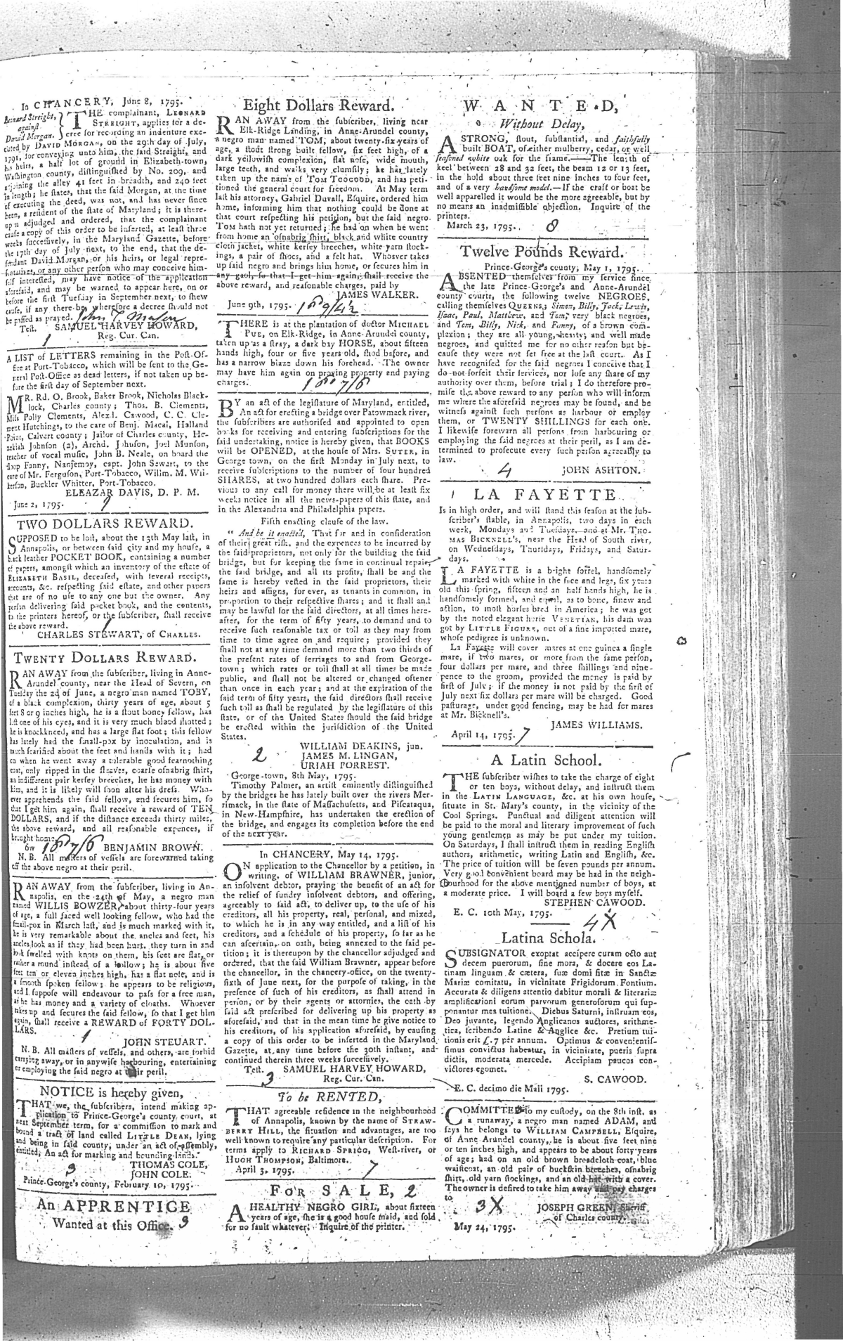 Maryland Gazette Collection MSA SC 2731 January 1, 1795 - December 29, 1803 M 1285 A Publication of the Archives of Maryland Online Image No: 103 Enlarge and print image (3M) |