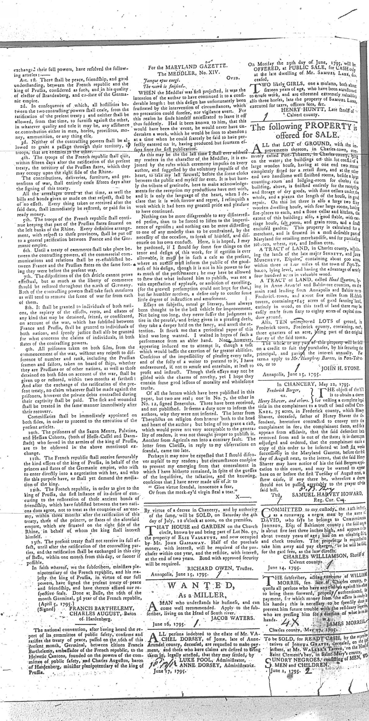 Maryland Gazette Collection MSA SC 2731 January 1, 1795 - December 29, 1803 M 1285 A Publication of the Archives of Maryland Online Image No: 106 Enlarge and print image (2M) |