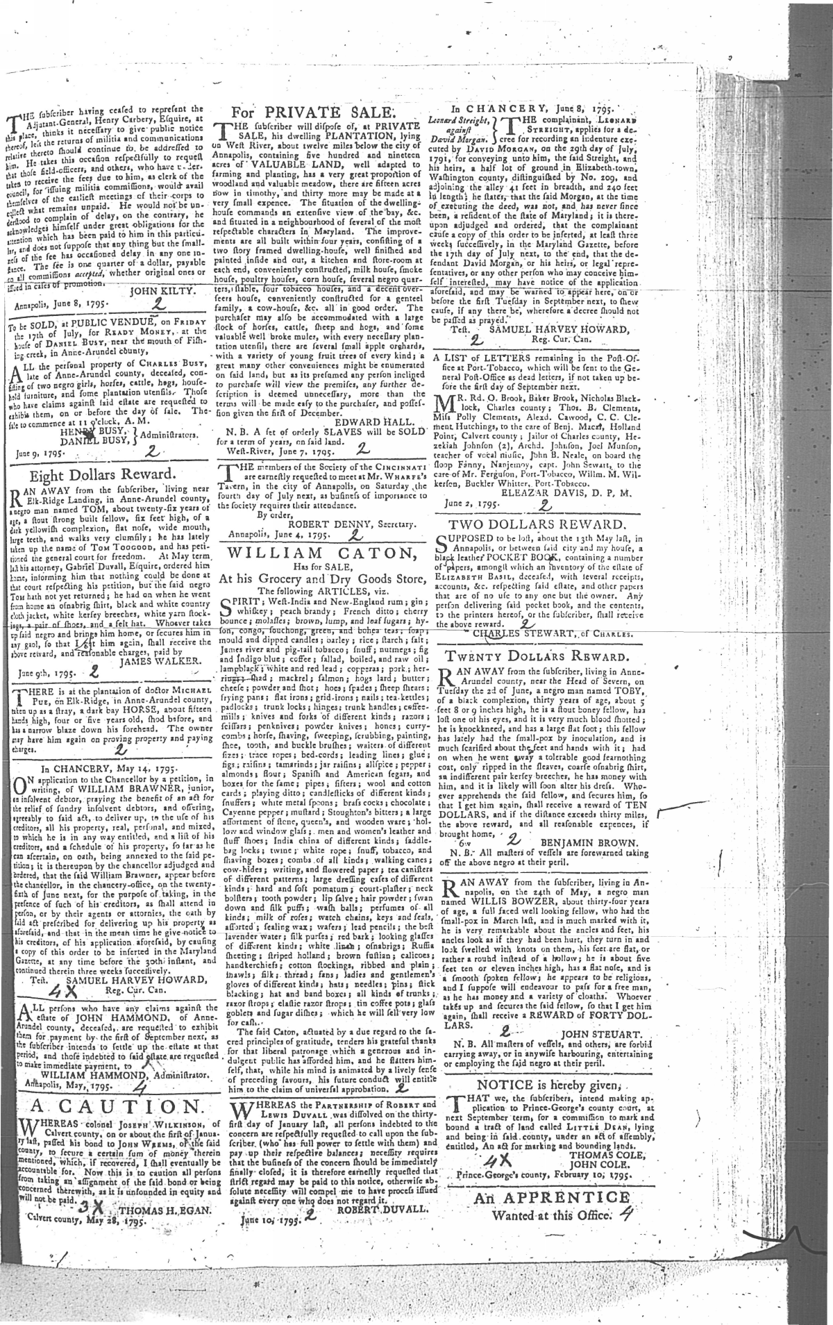 Maryland Gazette Collection MSA SC 2731 January 1, 1795 - December 29, 1803 M 1285 A Publication of the Archives of Maryland Online Image No: 107 Enlarge and print image (2M) |