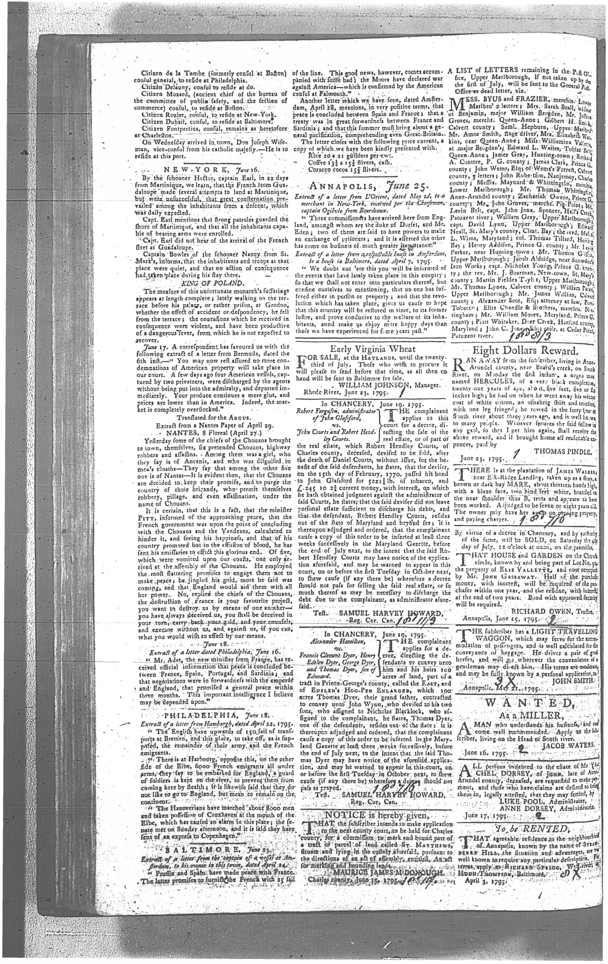 Maryland Gazette Collection MSA SC 2731 January 1, 1795 - December 29, 1803 M 1285 A Publication of the Archives of Maryland Online Image No: 110 Enlarge and print image (3M) |
