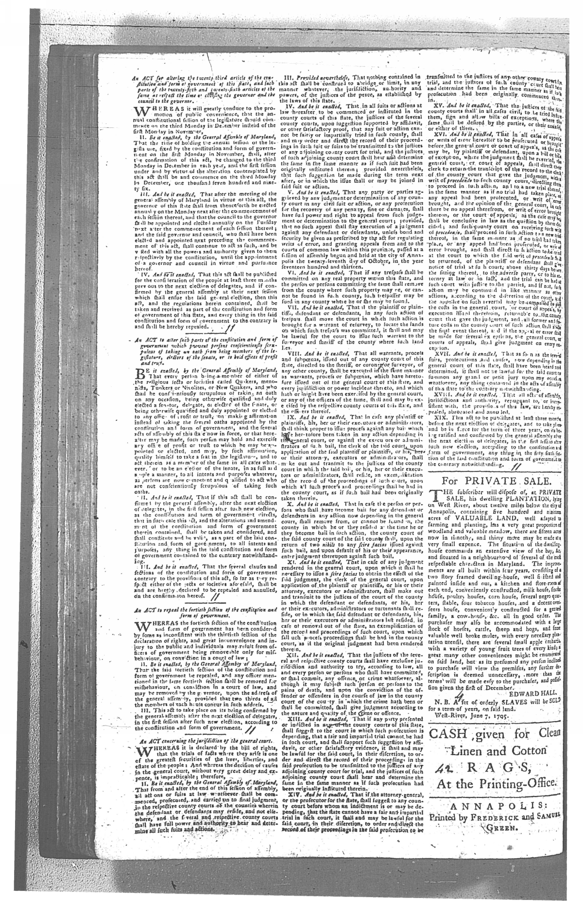 Maryland Gazette Collection MSA SC 2731 January 1, 1795 - December 29, 1803 M 1285 A Publication of the Archives of Maryland Online Image No: 120 Enlarge and print image (3M) |