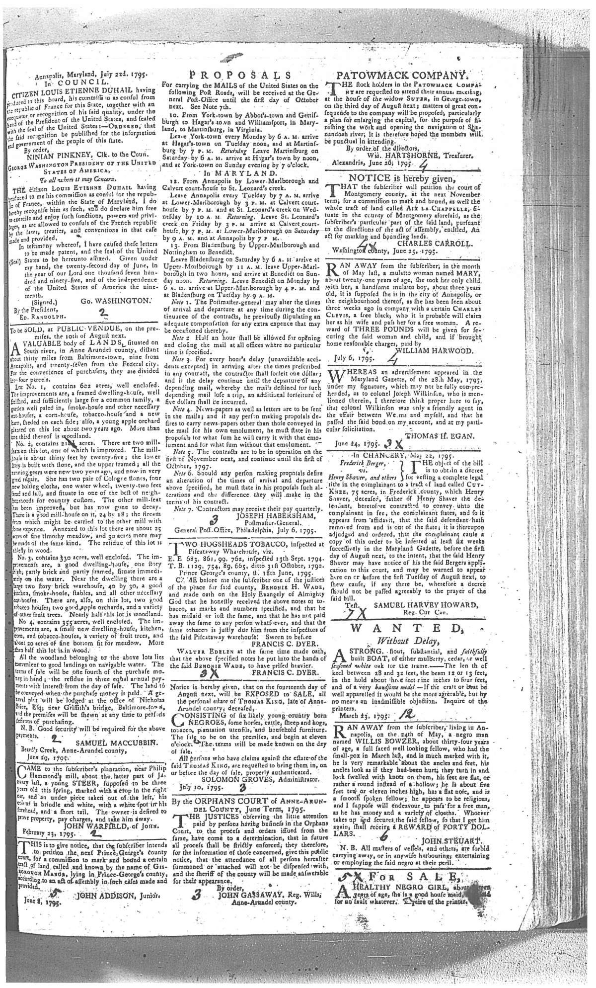 Maryland Gazette Collection MSA SC 2731 January 1, 1795 - December 29, 1803 M 1285 A Publication of the Archives of Maryland Online Image No: 131 Enlarge and print image (3M) |