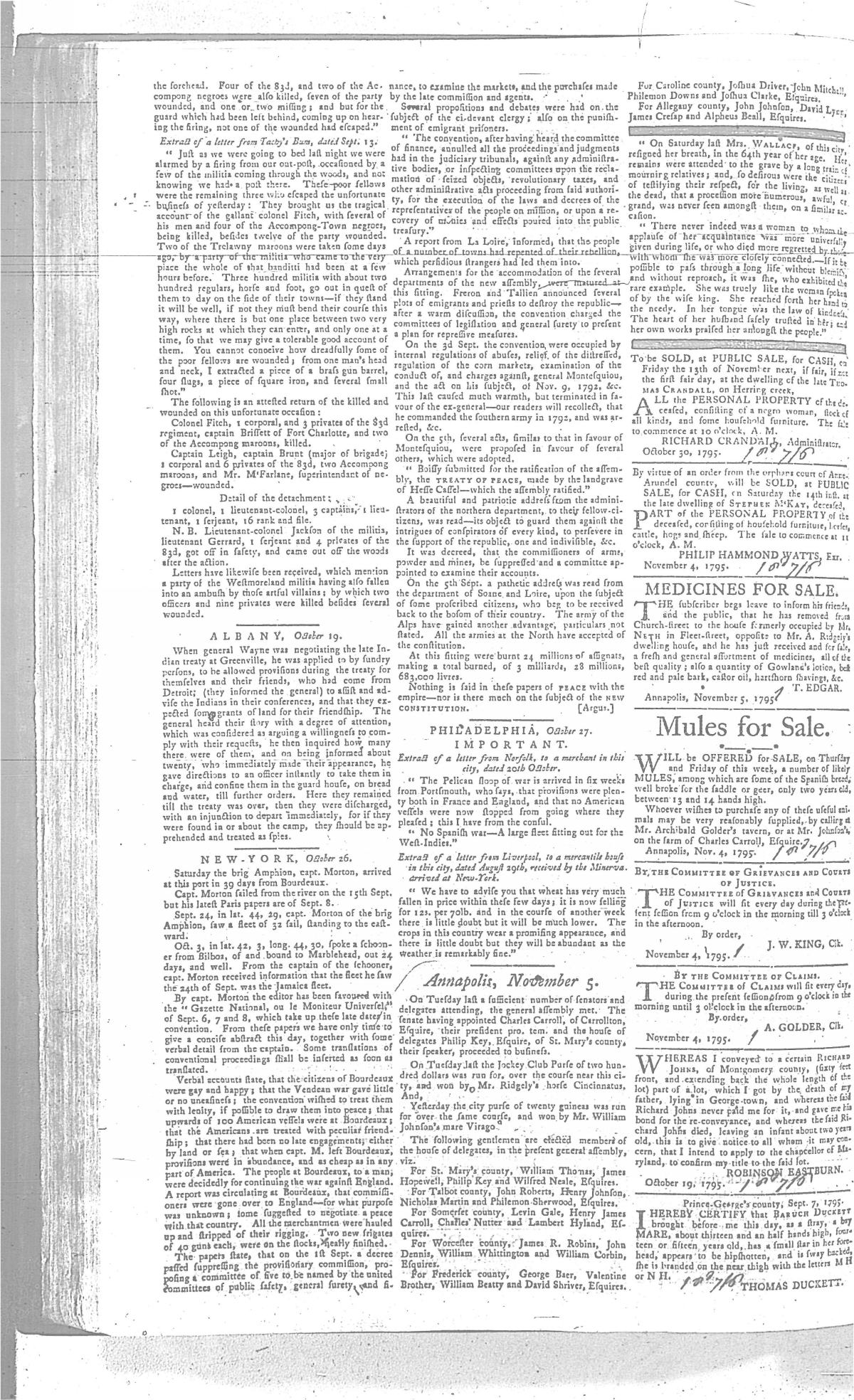 Maryland Gazette Collection MSA SC 2731 January 1, 1795 - December 29, 1803 M 1285 A Publication of the Archives of Maryland Online Image No: 182 Enlarge and print image (2M) |