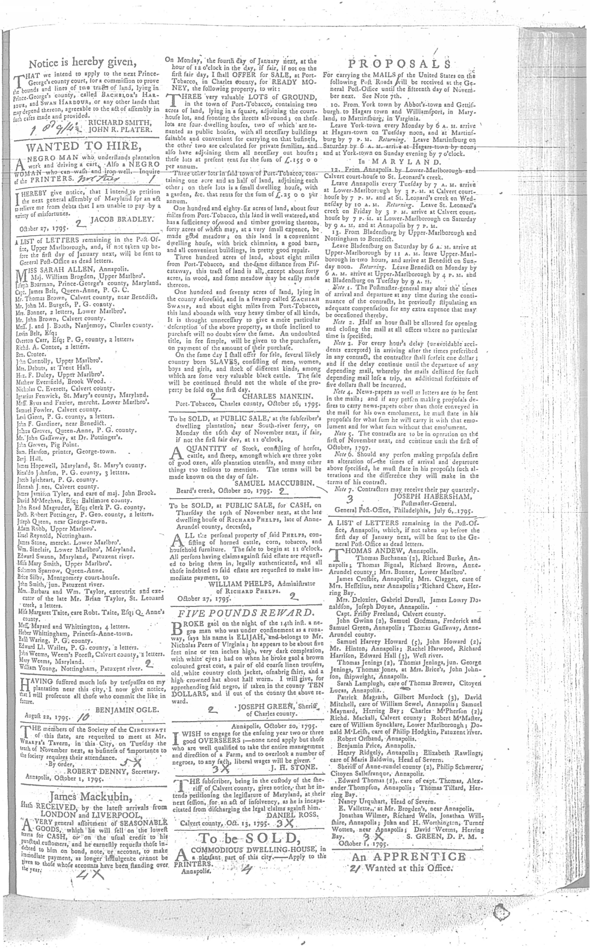 Maryland Gazette Collection MSA SC 2731 January 1, 1795 - December 29, 1803 M 1285 A Publication of the Archives of Maryland Online Image No: 183 Enlarge and print image (2M) |
