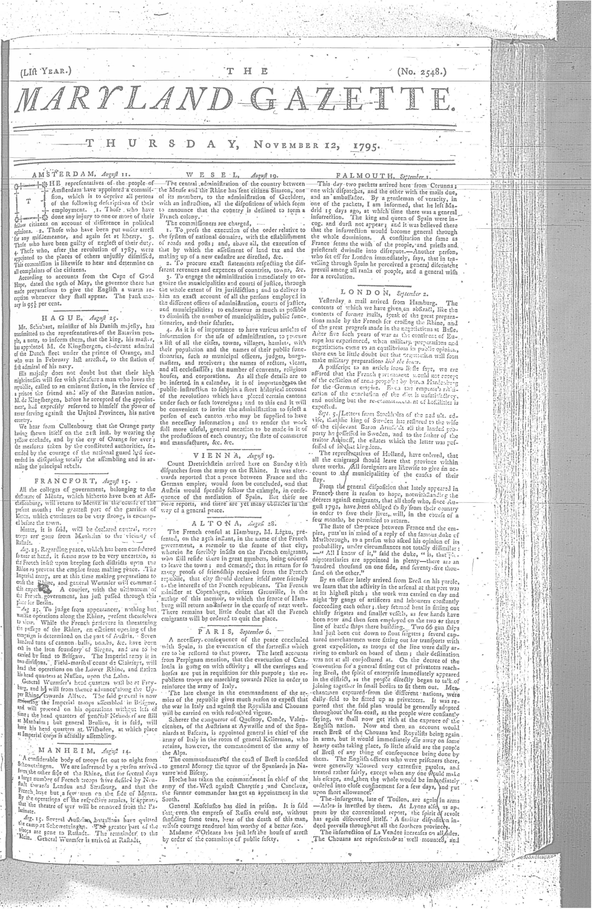 Maryland Gazette Collection MSA SC 2731 January 1, 1795 - December 29, 1803 M 1285 A Publication of the Archives of Maryland Online Image No: 185 Enlarge and print image (3M) |
