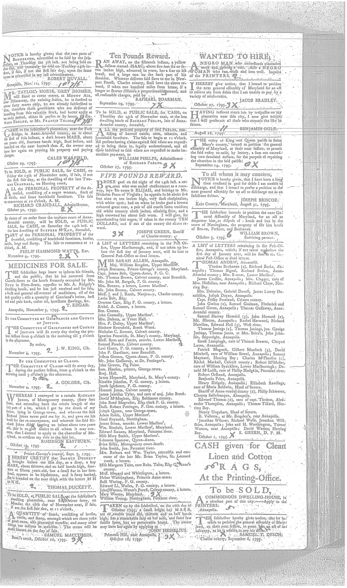 Maryland Gazette Collection MSA SC 2731 January 1, 1795 - December 29, 1803 M 1285 A Publication of the Archives of Maryland Online Image No: 187 Enlarge and print image (2M) |