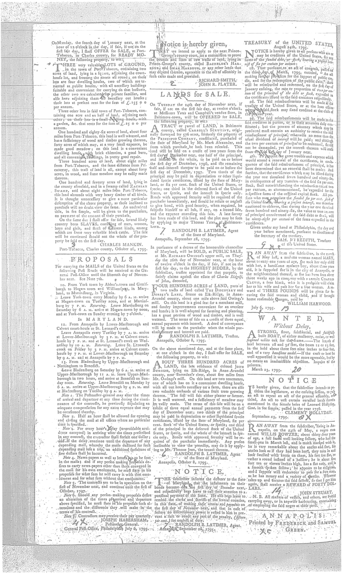 Maryland Gazette Collection MSA SC 2731 January 1, 1795 - December 29, 1803 M 1285 A Publication of the Archives of Maryland Online Image No: 188 Enlarge and print image (2M) |