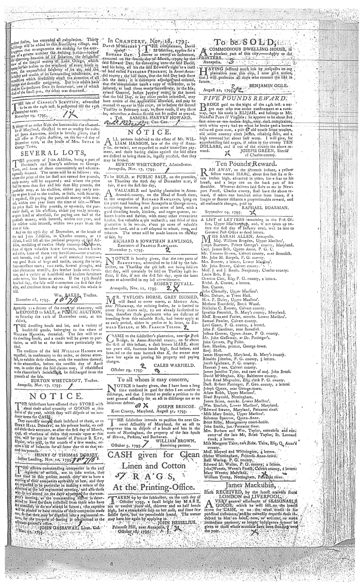 Maryland Gazette Collection MSA SC 2731 January 1, 1795 - December 29, 1803 M 1285 A Publication of the Archives of Maryland Online Image No: 191 Enlarge and print image (3M) |