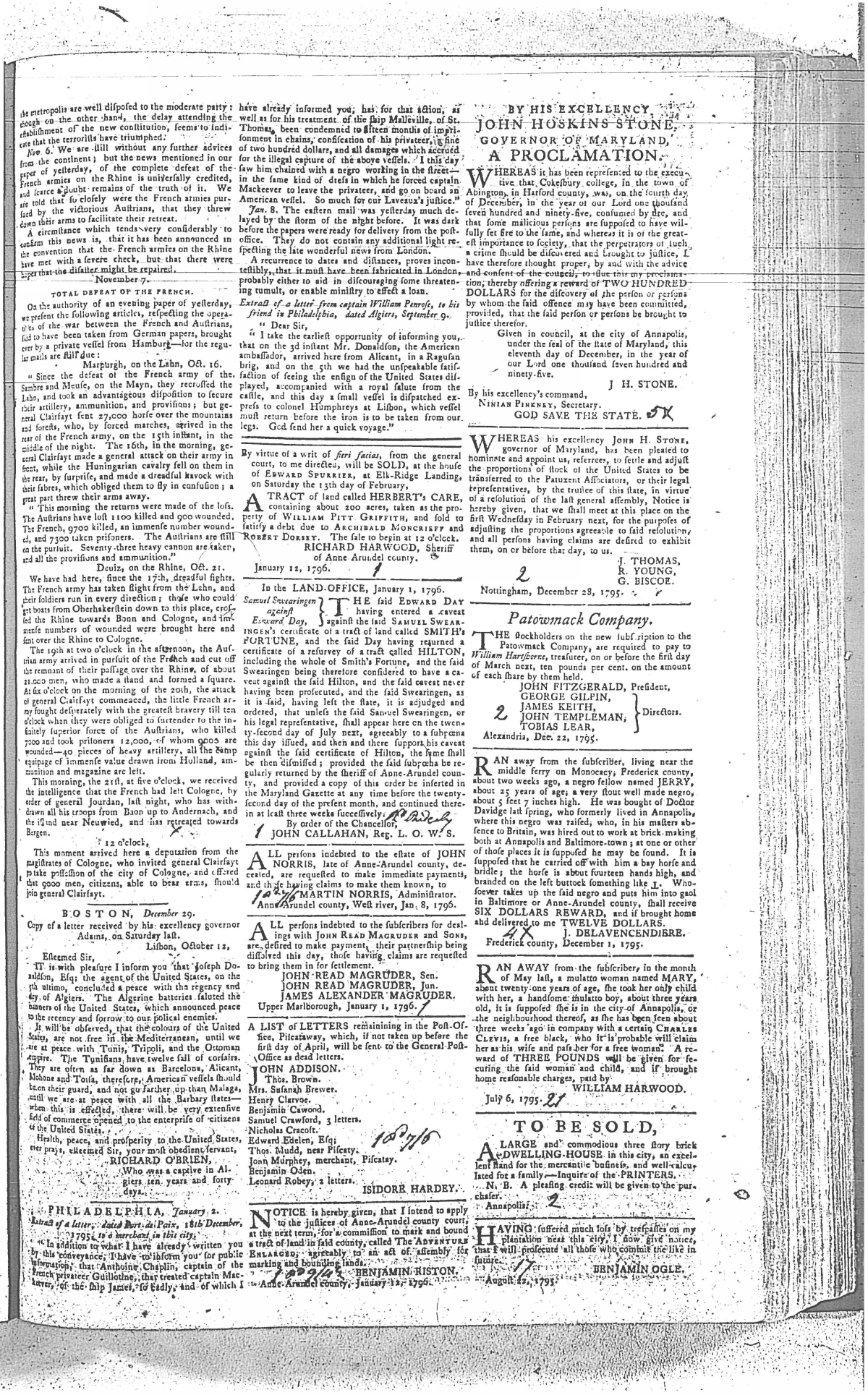 Maryland Gazette Collection MSA SC 2731 January 1, 1795 - December 29, 1803 M 1285 A Publication of the Archives of Maryland Online Image No: 221 Enlarge and print image (3M) |