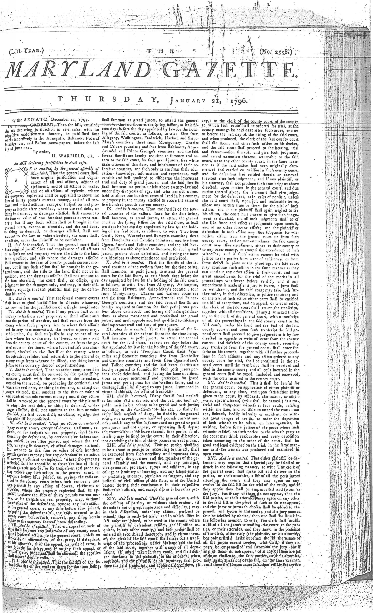 Maryland Gazette Collection MSA SC 2731 January 1, 1795 - December 29, 1803 M 1285 A Publication of the Archives of Maryland Online Image No: 223 Enlarge and print image (3M) |