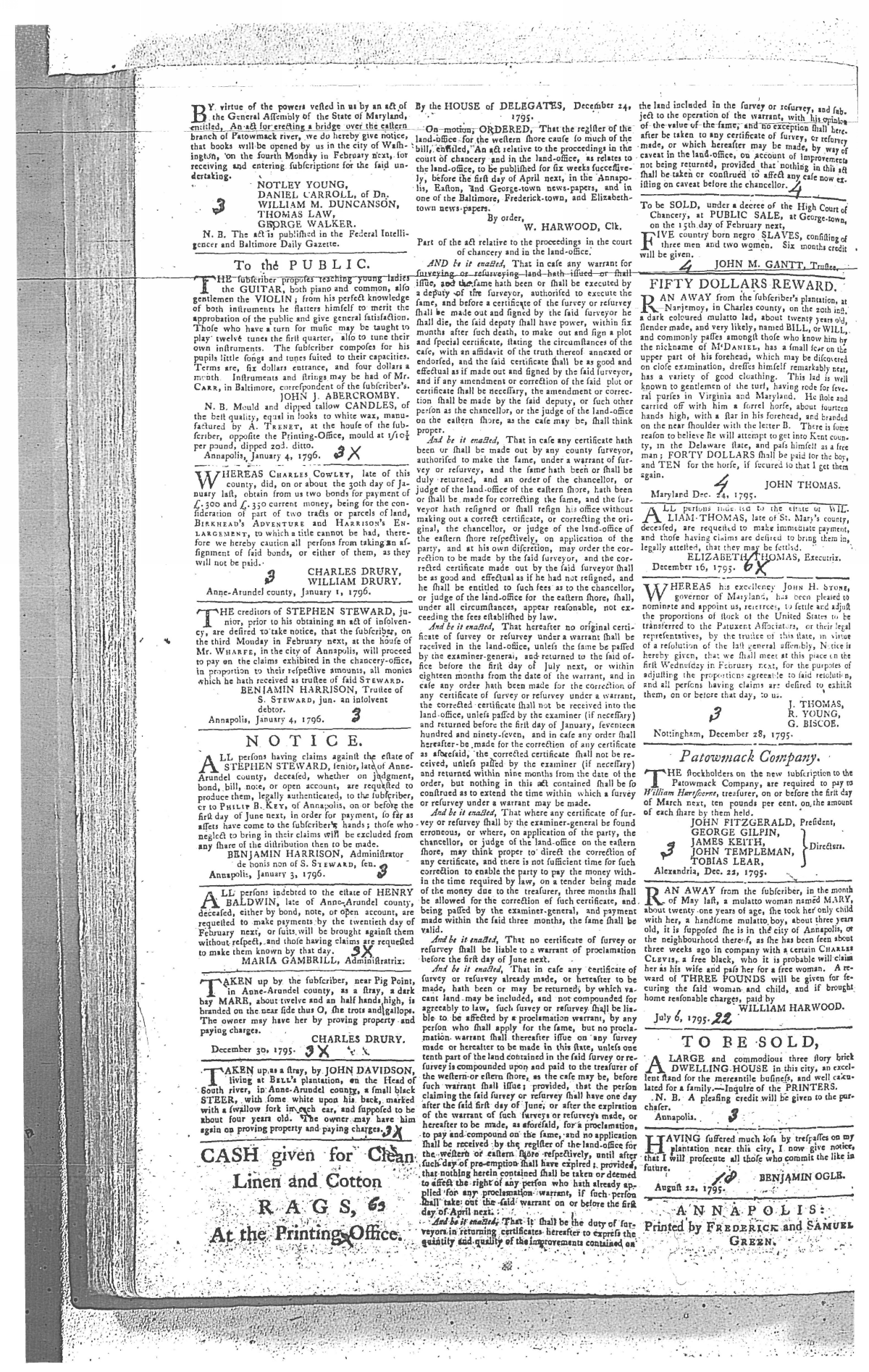 Maryland Gazette Collection MSA SC 2731 January 1, 1795 - December 29, 1803 M 1285 A Publication of the Archives of Maryland Online Image No: 226 Enlarge and print image (3M) |