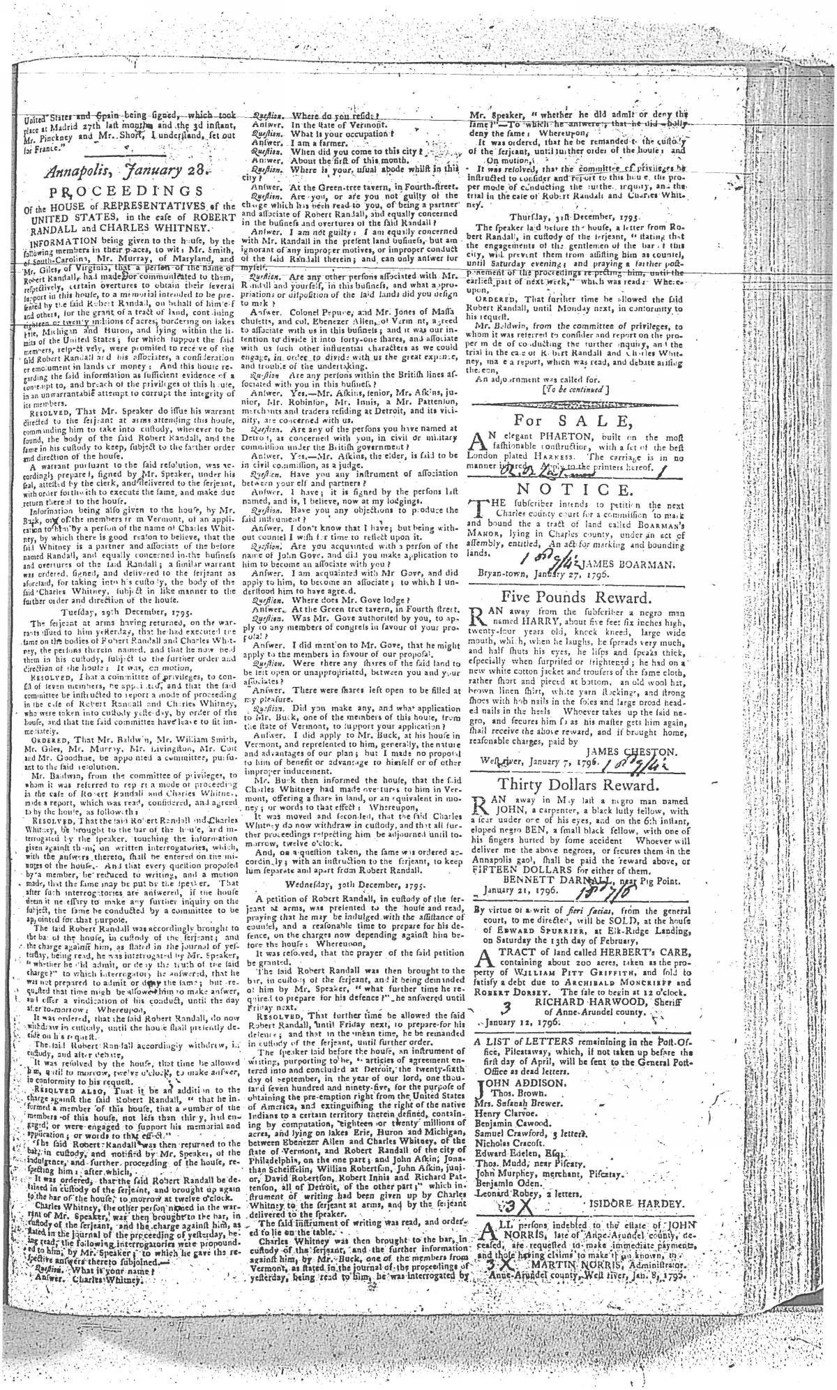 Maryland Gazette Collection MSA SC 2731 January 1, 1795 - December 29, 1803 M 1285 A Publication of the Archives of Maryland Online Image No: 229 Enlarge and print image (3M) |