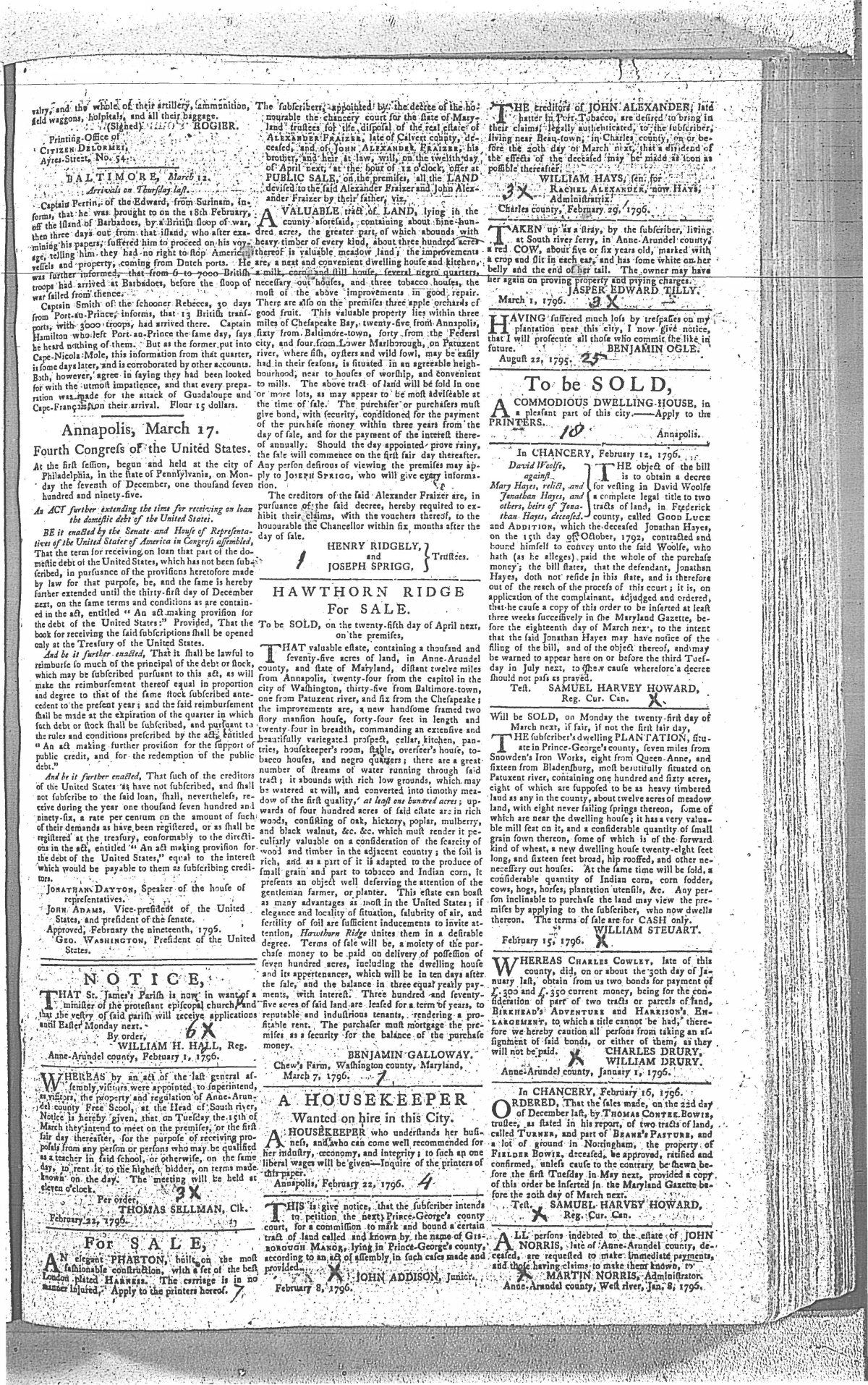 Maryland Gazette Collection MSA SC 2731 January 1, 1795 - December 29, 1803 M 1285 A Publication of the Archives of Maryland Online Image No: 259 Enlarge and print image (3M) |