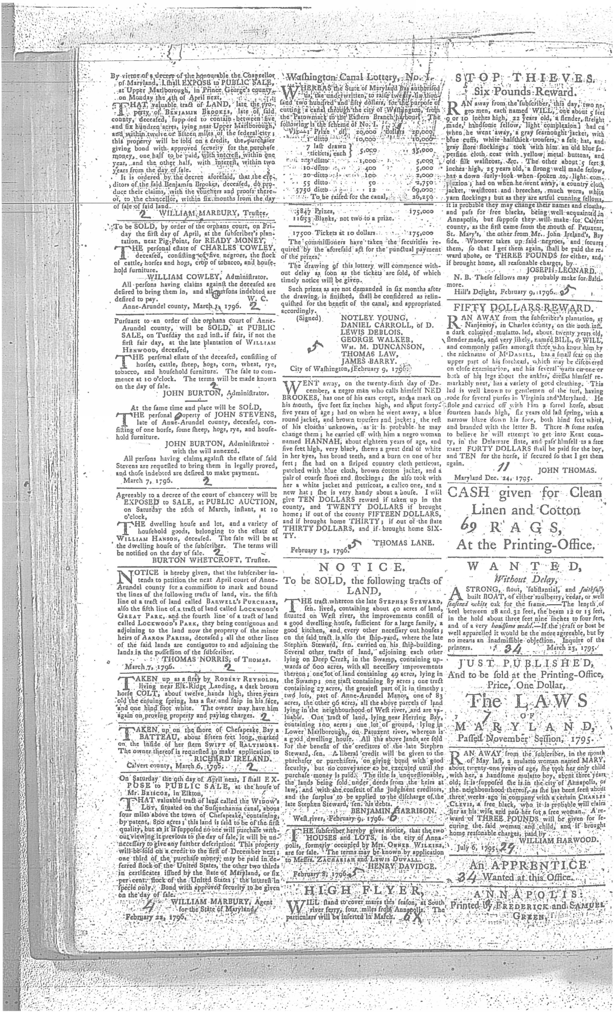 Maryland Gazette Collection MSA SC 2731 January 1, 1795 - December 29, 1803 M 1285 A Publication of the Archives of Maryland Online Image No: 260 Enlarge and print image (3M) |