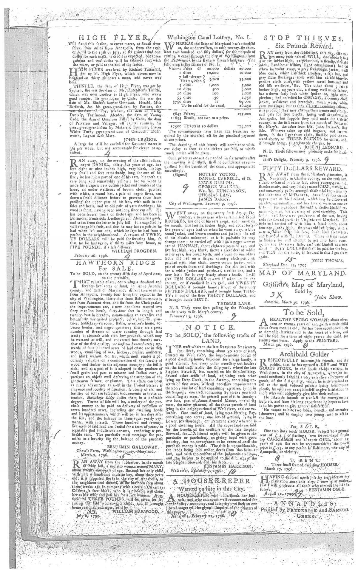 Maryland Gazette Collection MSA SC 2731 January 1, 1795 - December 29, 1803 M 1285 A Publication of the Archives of Maryland Online Image No: 276 Enlarge and print image (3M) |