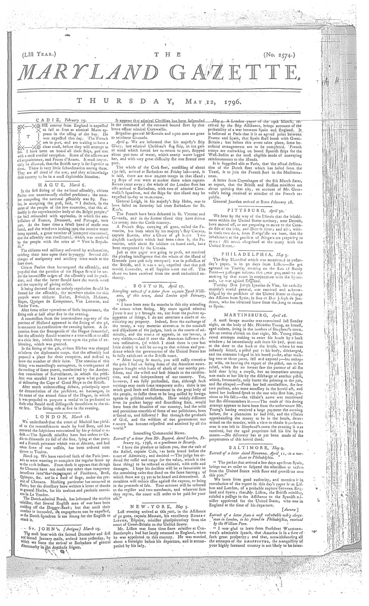 Maryland Gazette Collection MSA SC 2731 January 1, 1795 - December 29, 1803 M 1285 A Publication of the Archives of Maryland Online Image No: 289 Enlarge and print image (2M) |