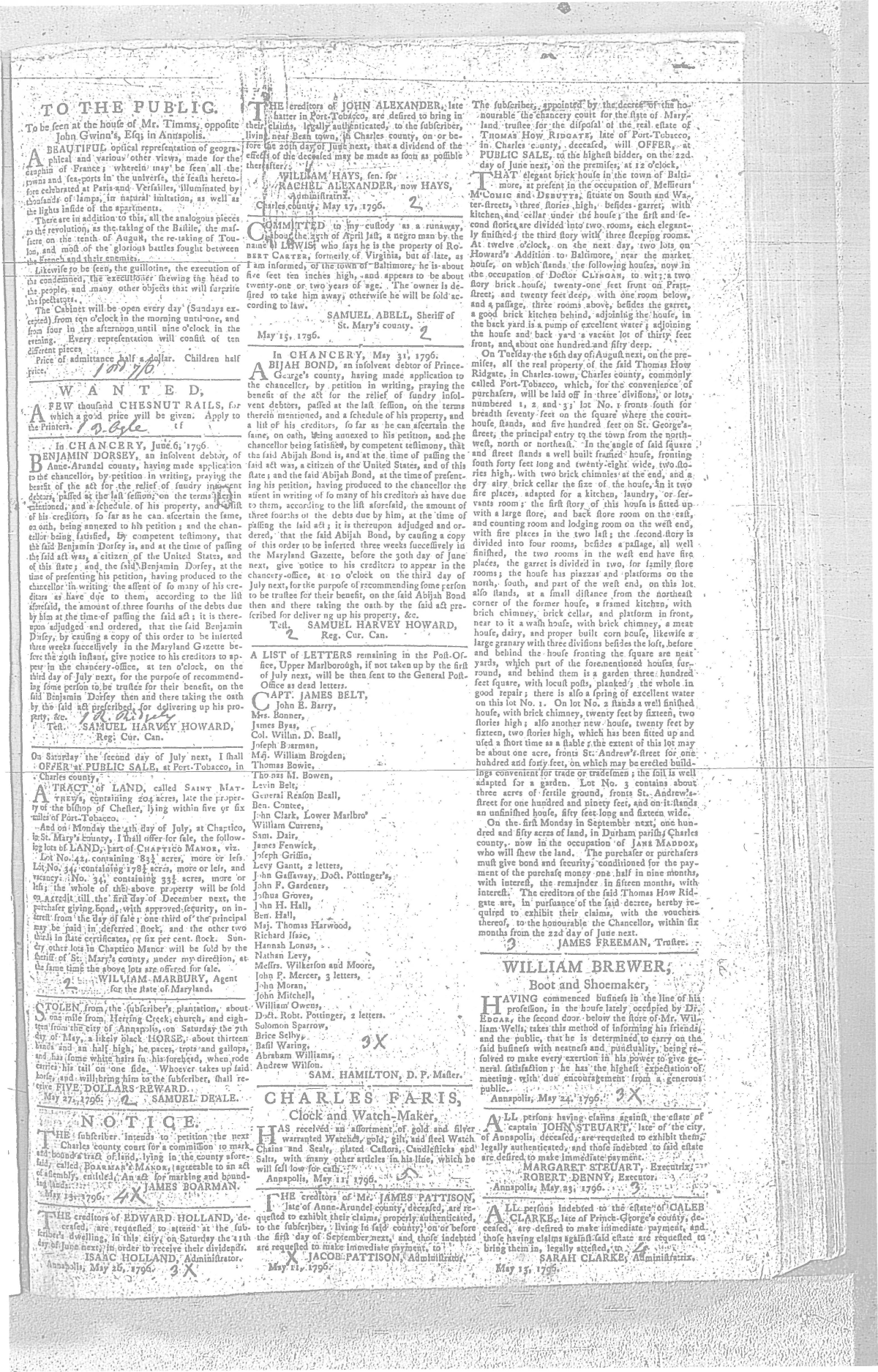 Maryland Gazette Collection MSA SC 2731 January 1, 1795 - December 29, 1803 M 1285 A Publication of the Archives of Maryland Online Image No: 309 Enlarge and print image (3M) |