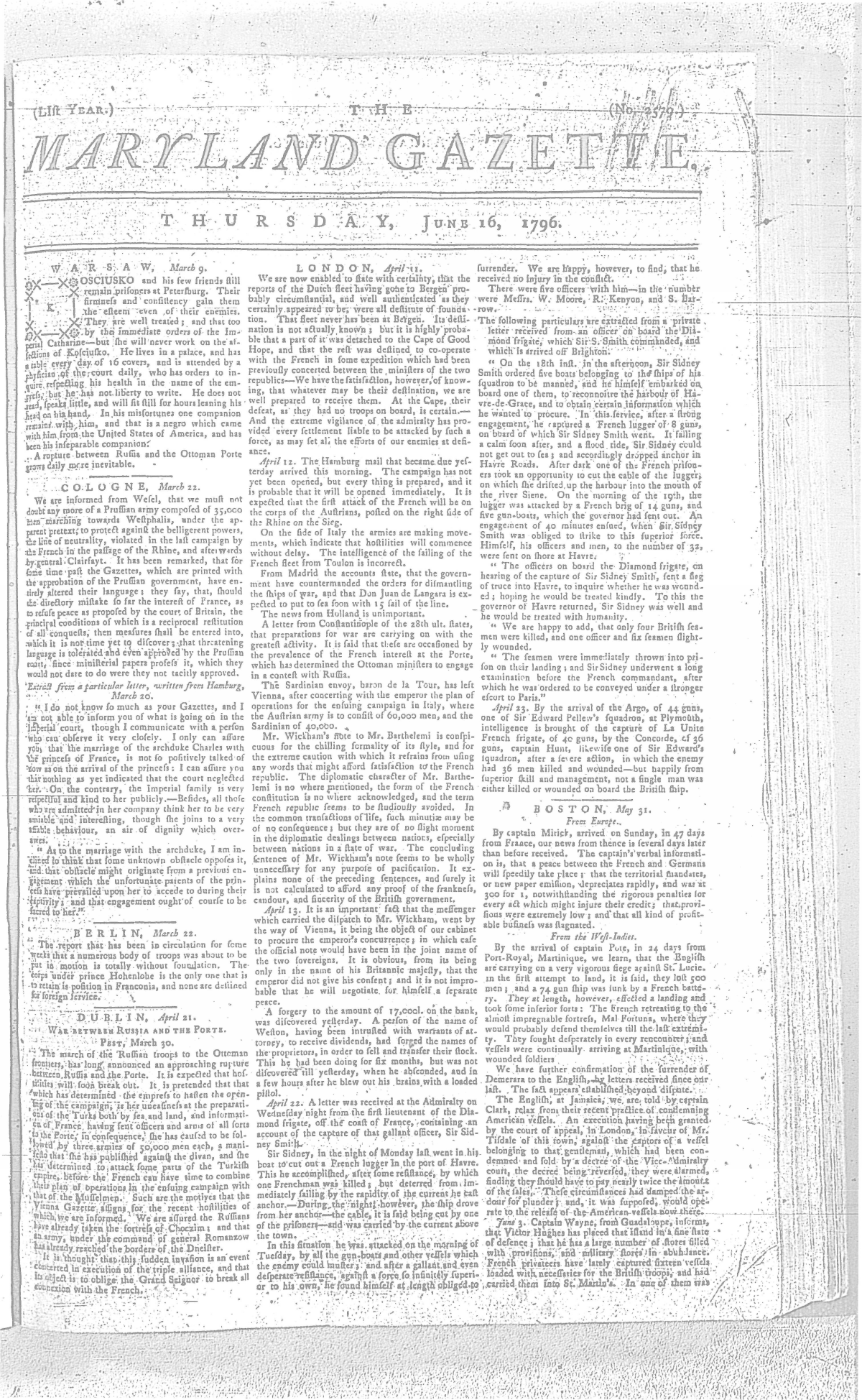 Maryland Gazette Collection MSA SC 2731 January 1, 1795 - December 29, 1803 M 1285 A Publication of the Archives of Maryland Online Image No: 311 Enlarge and print image (3M) |