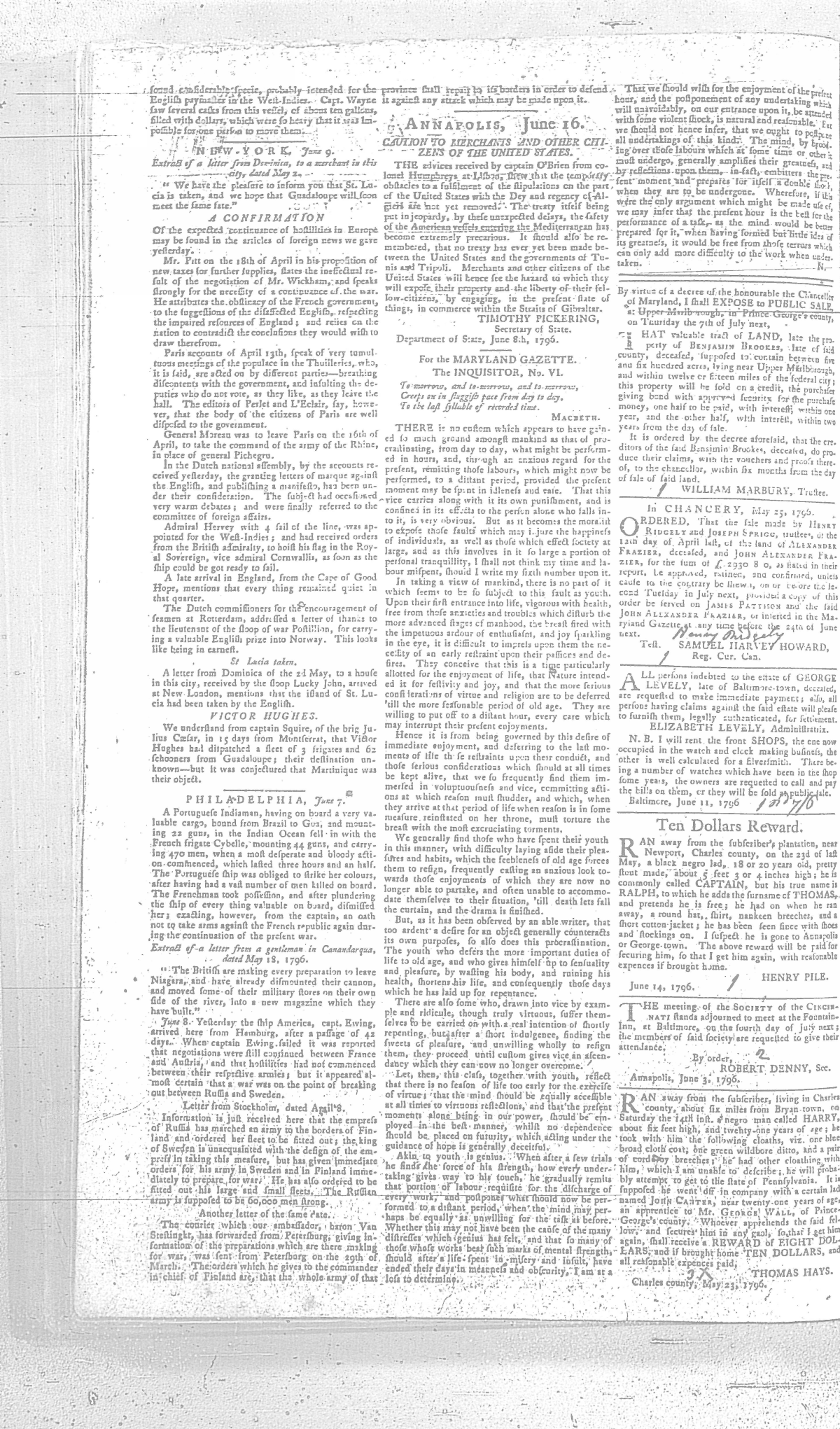 Maryland Gazette Collection MSA SC 2731 January 1, 1795 - December 29, 1803 M 1285 A Publication of the Archives of Maryland Online Image No: 312 Enlarge and print image (2M) |