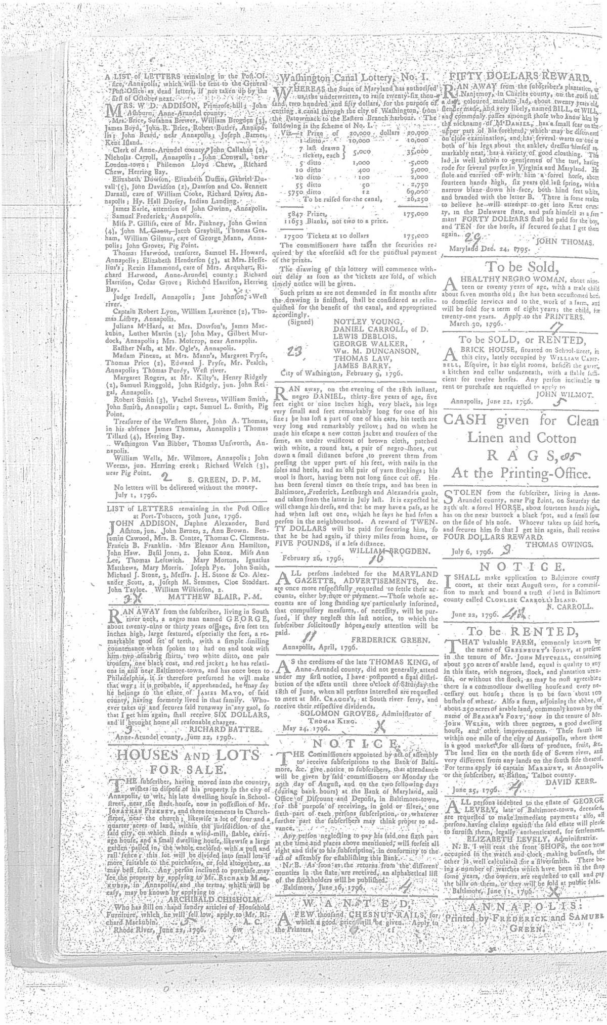 Maryland Gazette Collection MSA SC 2731 January 1, 1795 - December 29, 1803 M 1285 A Publication of the Archives of Maryland Online Image No: 334 Enlarge and print image (2M) |