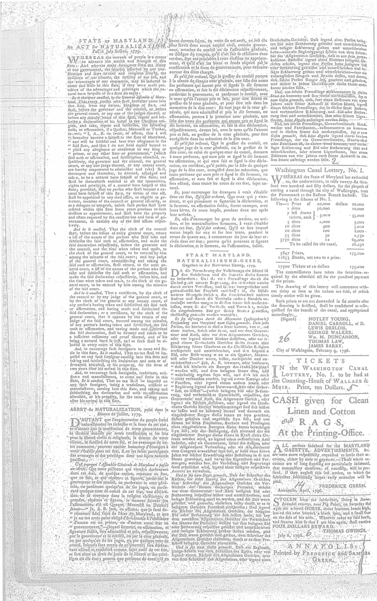 Maryland Gazette Collection MSA SC 2731 January 1, 1795 - December 29, 1803 M 1285 A Publication of the Archives of Maryland Online Image No: 346 Enlarge and print image (3M) |
