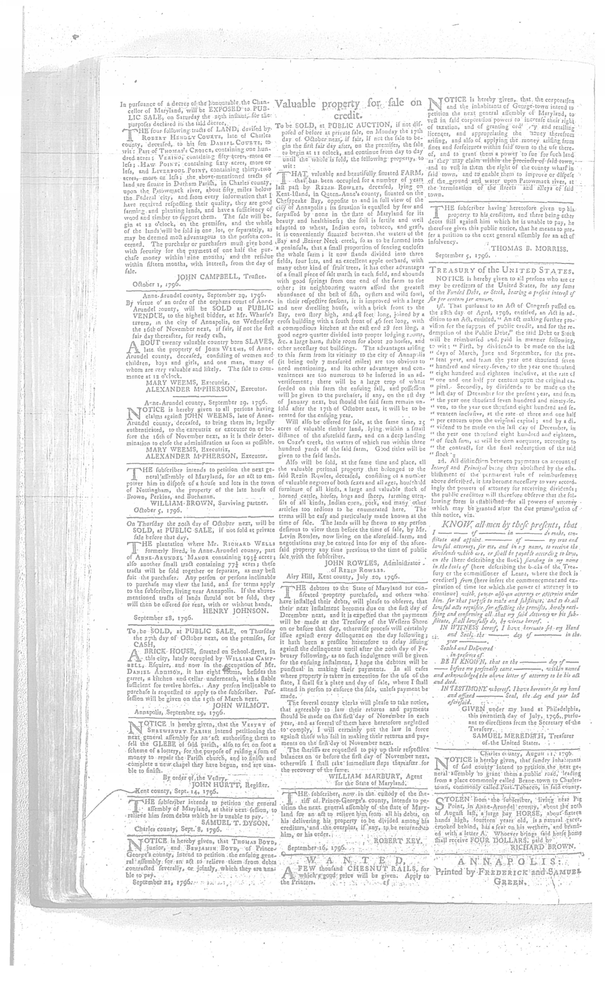 Maryland Gazette Collection MSA SC 2731 January 1, 1795 - December 29, 1803 M 1285 A Publication of the Archives of Maryland Online Image No: 384 Enlarge and print image (2M) |