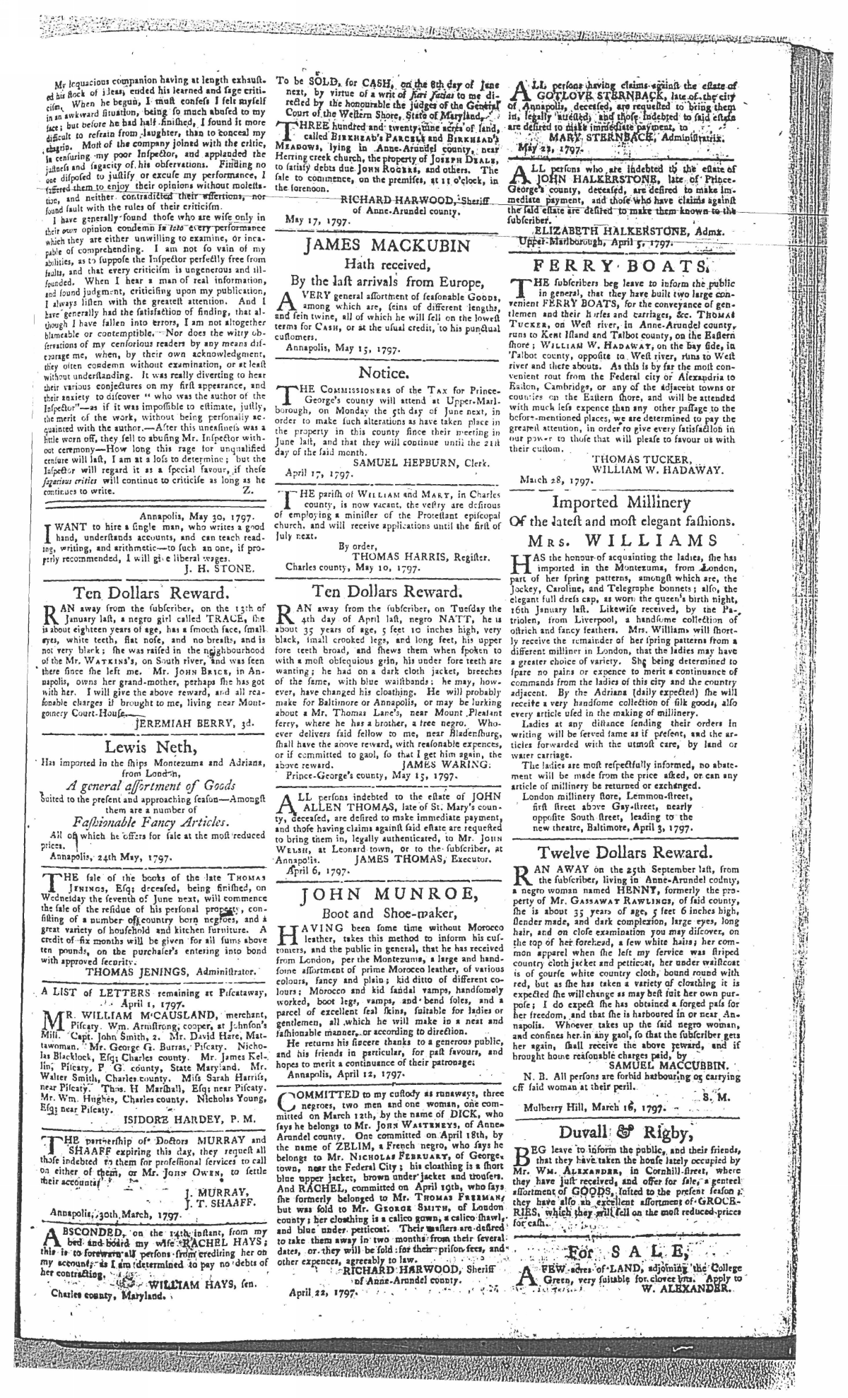 Maryland Gazette Collection MSA SC 2731 January 1, 1795 - December 29, 1803 M 1285 A Publication of the Archives of Maryland Online Image No: 517 Enlarge and print image (3M) |