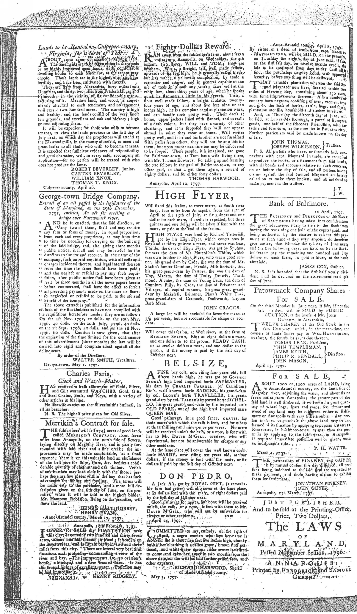 Maryland Gazette Collection MSA SC 2731 January 1, 1795 - December 29, 1803 M 1285 A Publication of the Archives of Maryland Online Image No: 518 Enlarge and print image (3M) |