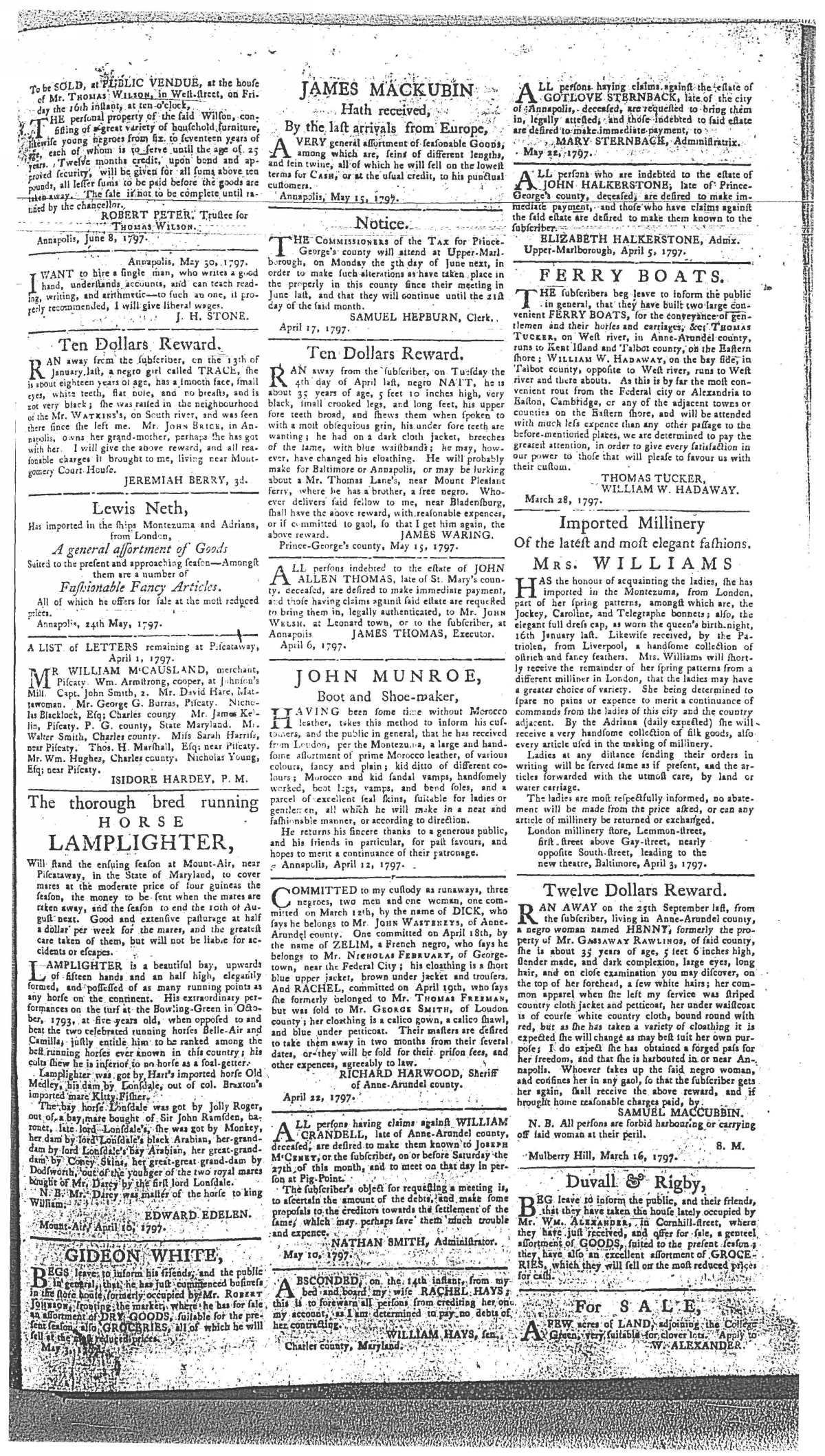 Maryland Gazette Collection MSA SC 2731 January 1, 1795 - December 29, 1803 M 1285 A Publication of the Archives of Maryland Online Image No: 521 Enlarge and print image (3M) |