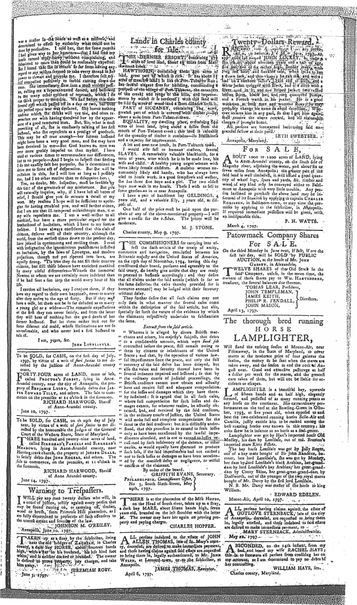 Maryland Gazette Collection MSA SC 2731 January 1, 1795 - December 29, 1803 M 1285 A Publication of the Archives of Maryland Online Image No: 525 Enlarge and print image (3M) |