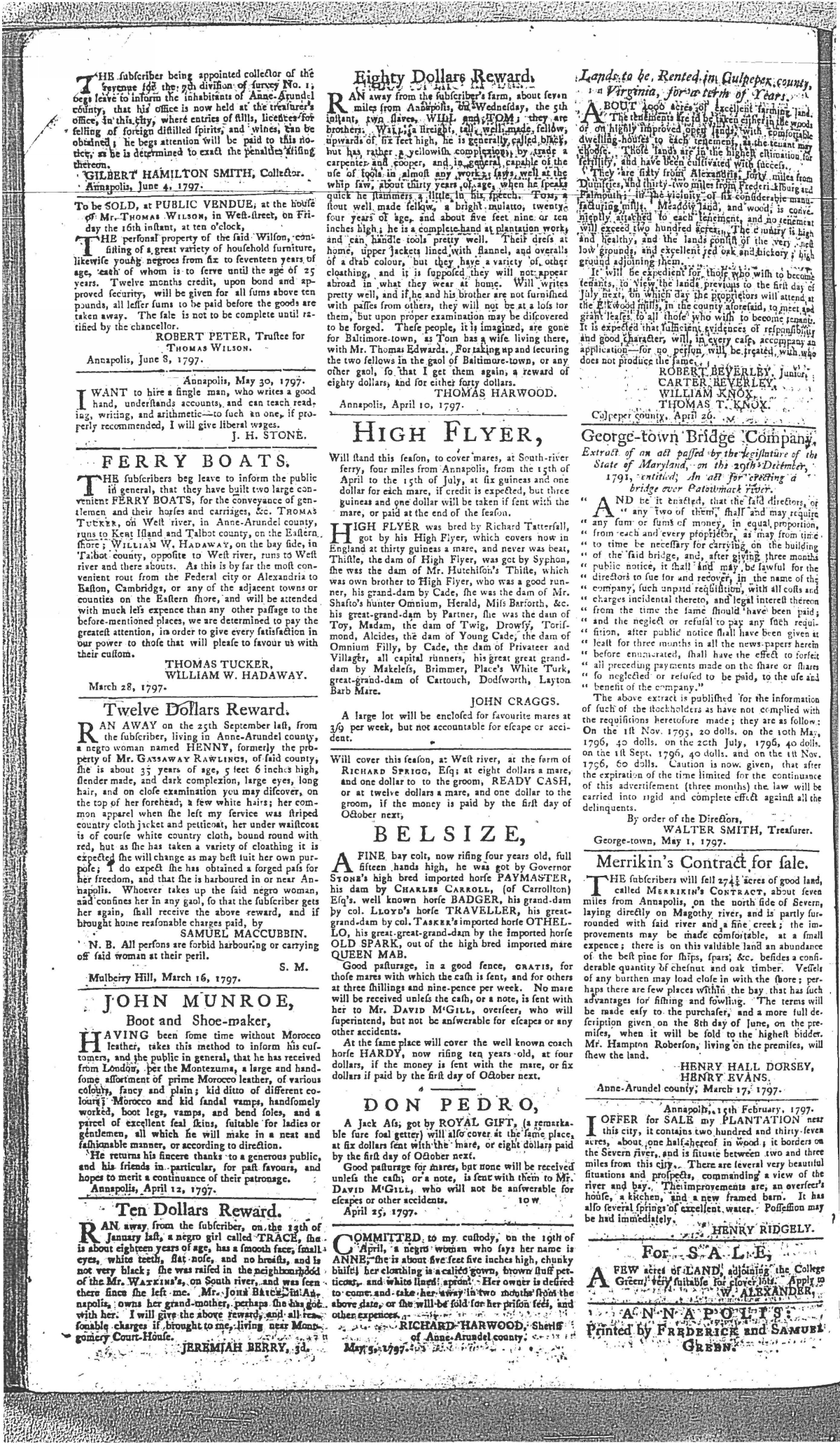 Maryland Gazette Collection MSA SC 2731 January 1, 1795 - December 29, 1803 M 1285 A Publication of the Archives of Maryland Online Image No: 526 Enlarge and print image (3M) |
