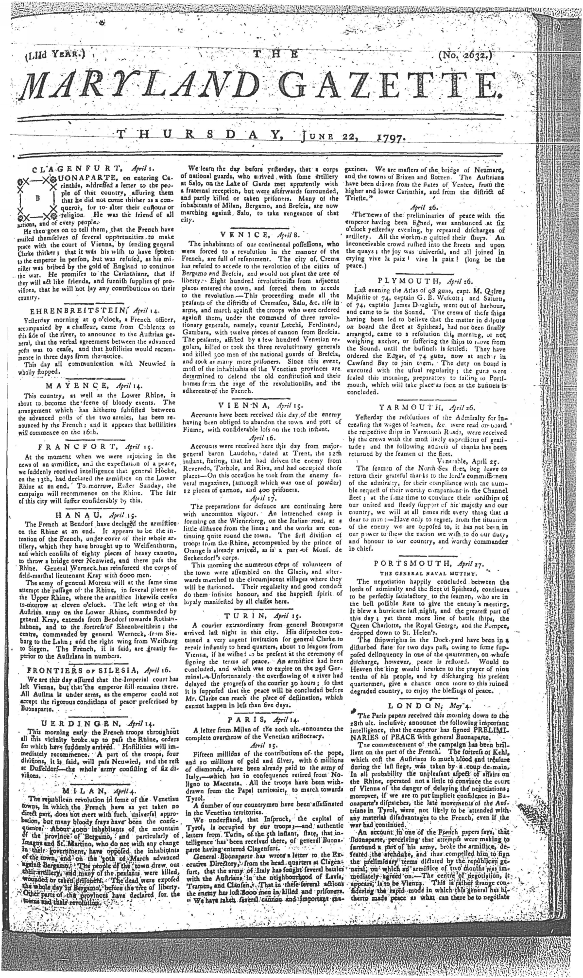 Maryland Gazette Collection MSA SC 2731 January 1, 1795 - December 29, 1803 M 1285 A Publication of the Archives of Maryland Online Image No: 527 Enlarge and print image (3M) |