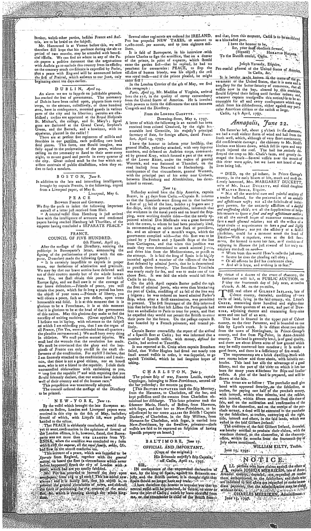 Maryland Gazette Collection MSA SC 2731 January 1, 1795 - December 29, 1803 M 1285 A Publication of the Archives of Maryland Online Image No: 532 Enlarge and print image (3M) |