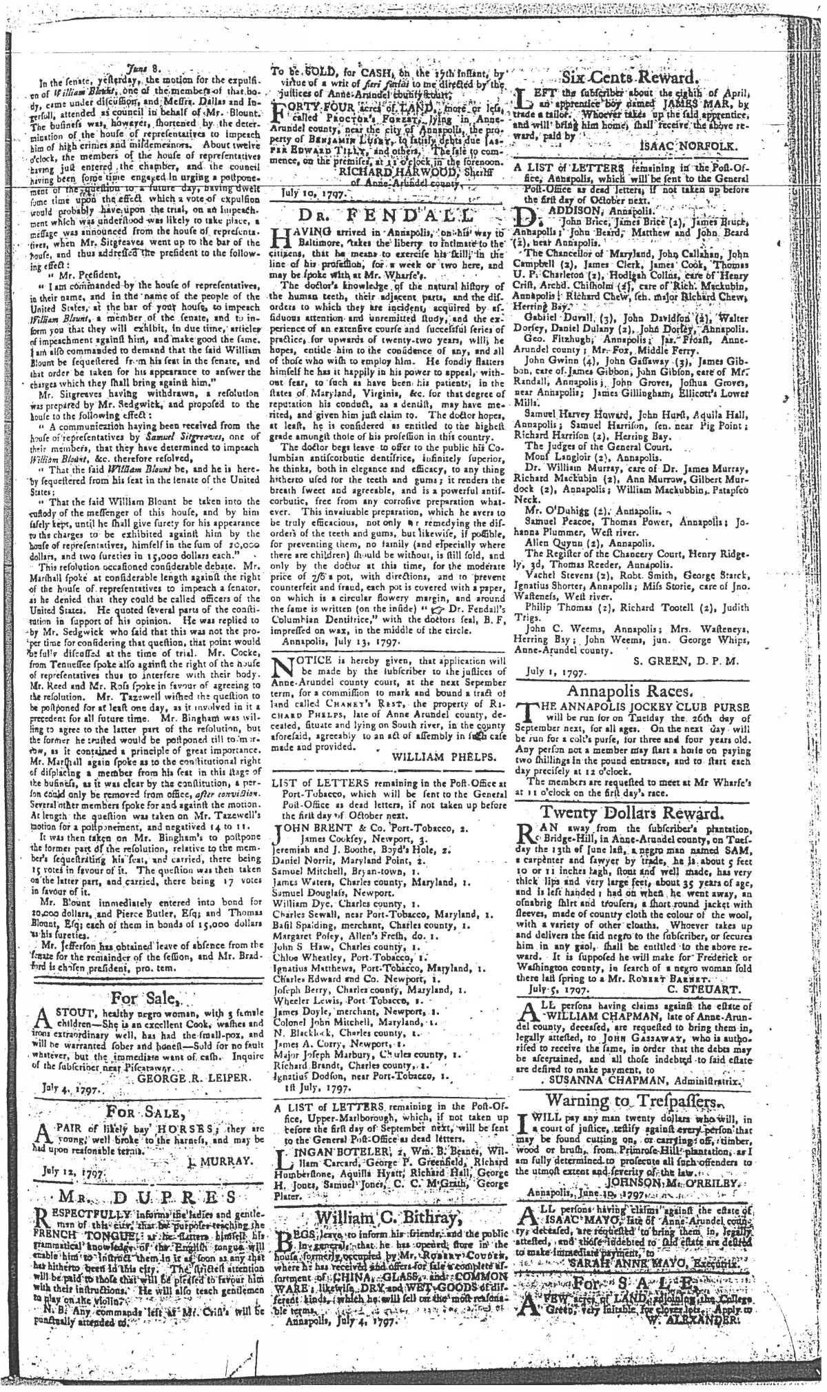 Maryland Gazette Collection MSA SC 2731 January 1, 1795 - December 29, 1803 M 1285 A Publication of the Archives of Maryland Online Image No: 547 Enlarge and print image (3M) |