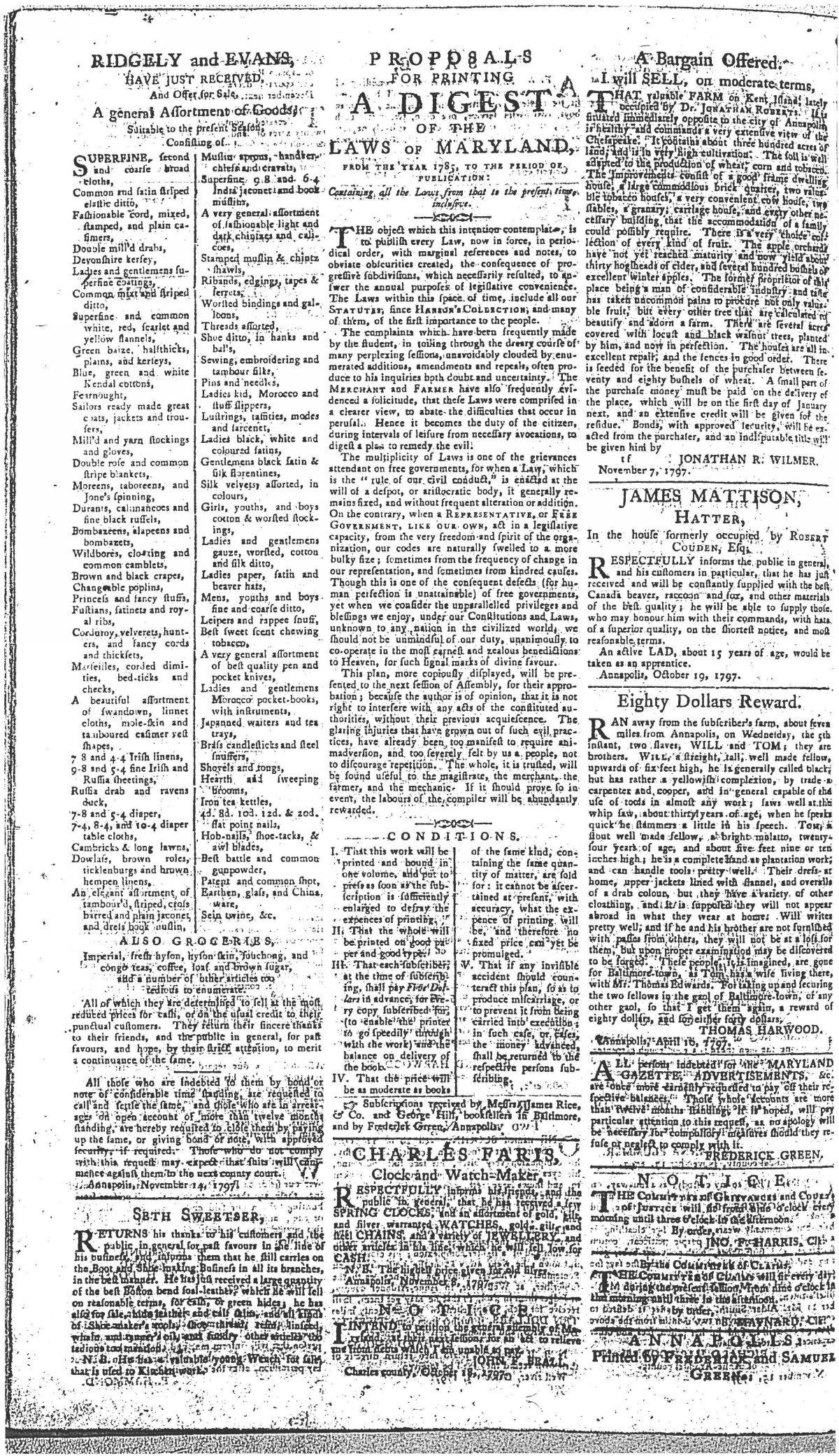 Maryland Gazette Collection MSA SC 2731 January 1, 1795 - December 29, 1803 M 1285 A Publication of the Archives of Maryland Online Image No: 646 Enlarge and print image (3M) |