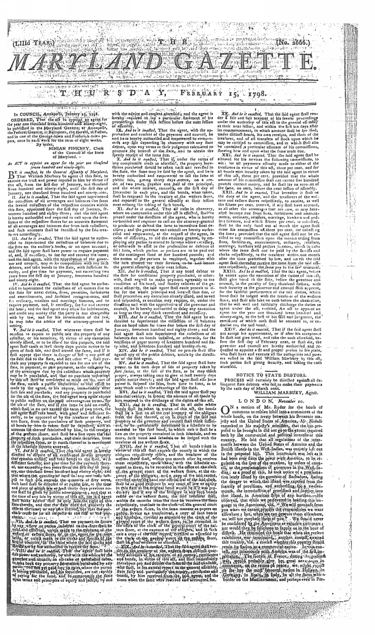 Maryland Gazette Collection MSA SC 2731 January 1, 1795 - December 29, 1803 M 1285 A Publication of the Archives of Maryland Online Image No: 680 Enlarge and print image (3M) |