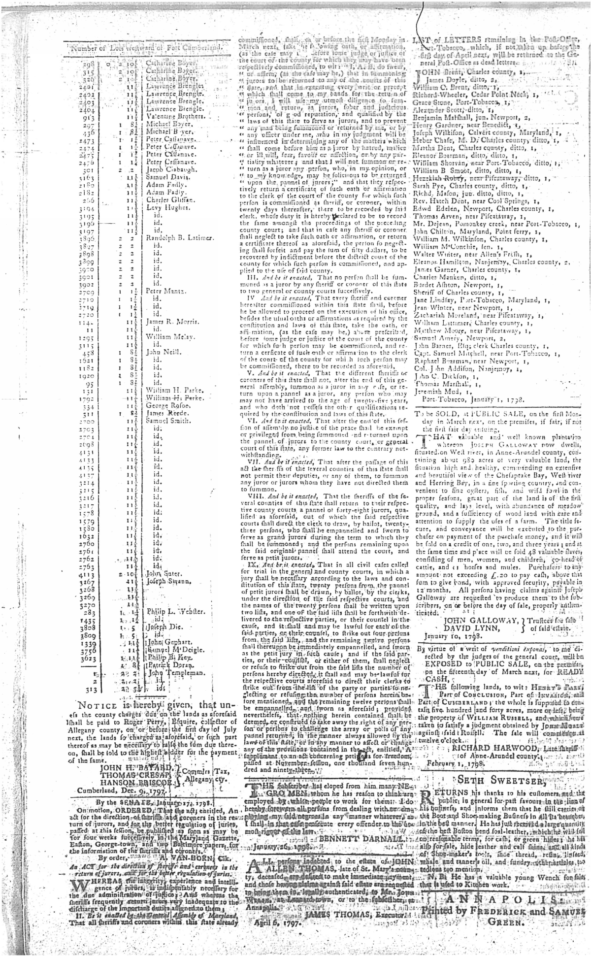 Maryland Gazette Collection MSA SC 2731 January 1, 1795 - December 29, 1803 M 1285 A Publication of the Archives of Maryland Online Image No: 683 Enlarge and print image (2M) |