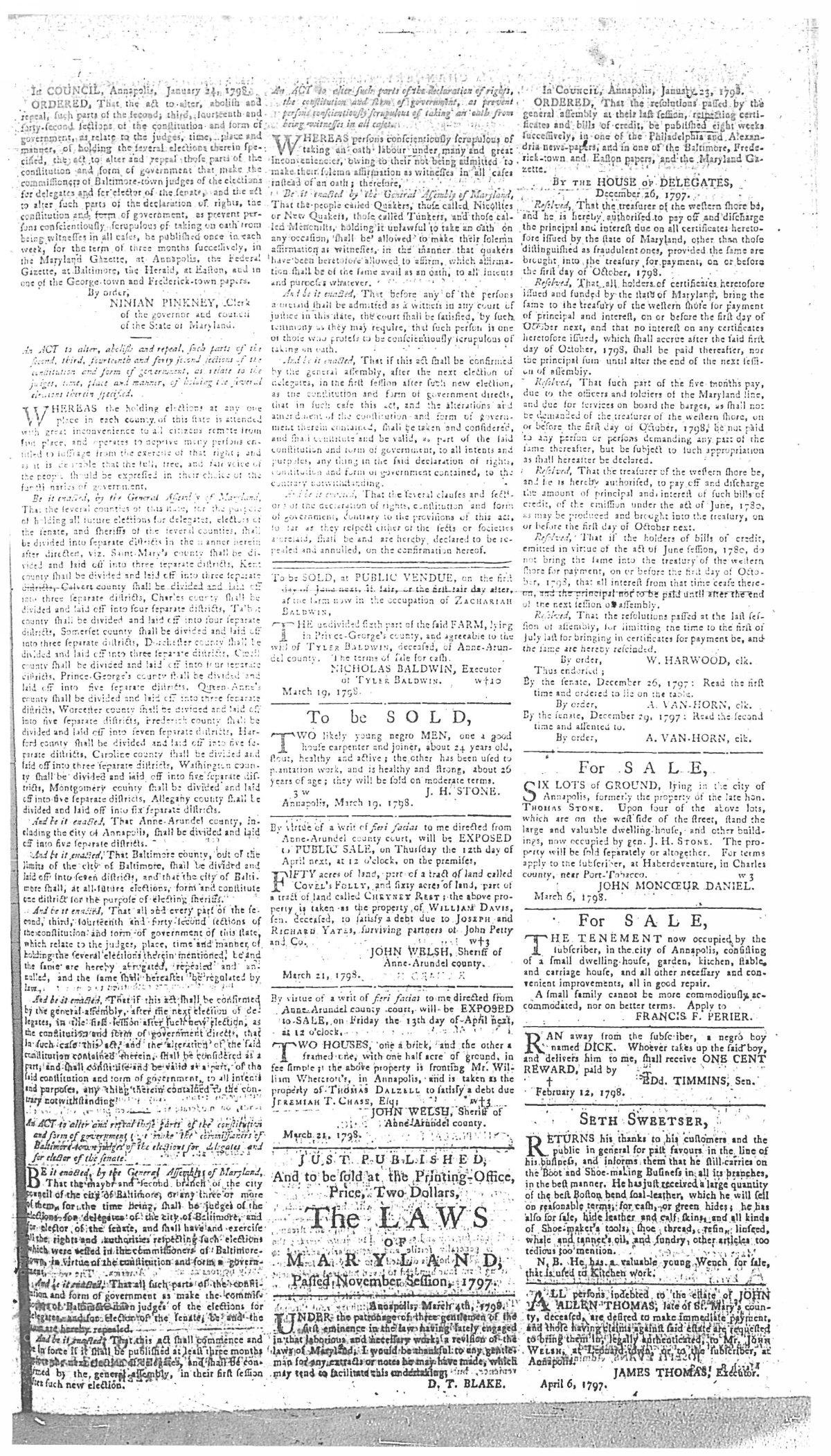 Maryland Gazette Collection MSA SC 2731 January 1, 1795 - December 29, 1803 M 1285 A Publication of the Archives of Maryland Online Image No: 702 Enlarge and print image (2M) |