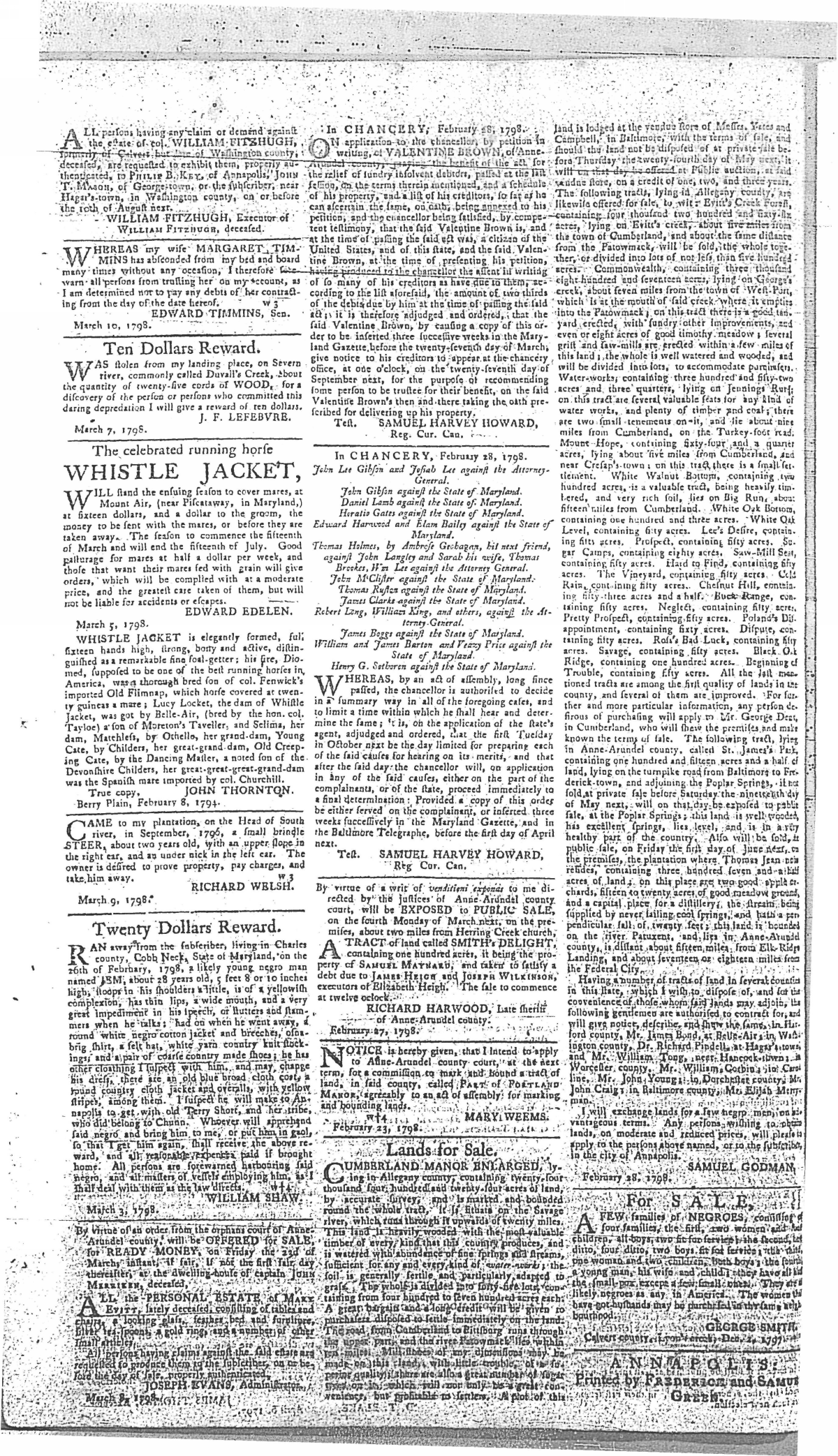 Maryland Gazette Collection MSA SC 2731 January 1, 1795 - December 29, 1803 M 1285 A Publication of the Archives of Maryland Online Image No: 705 Enlarge and print image (3M) |