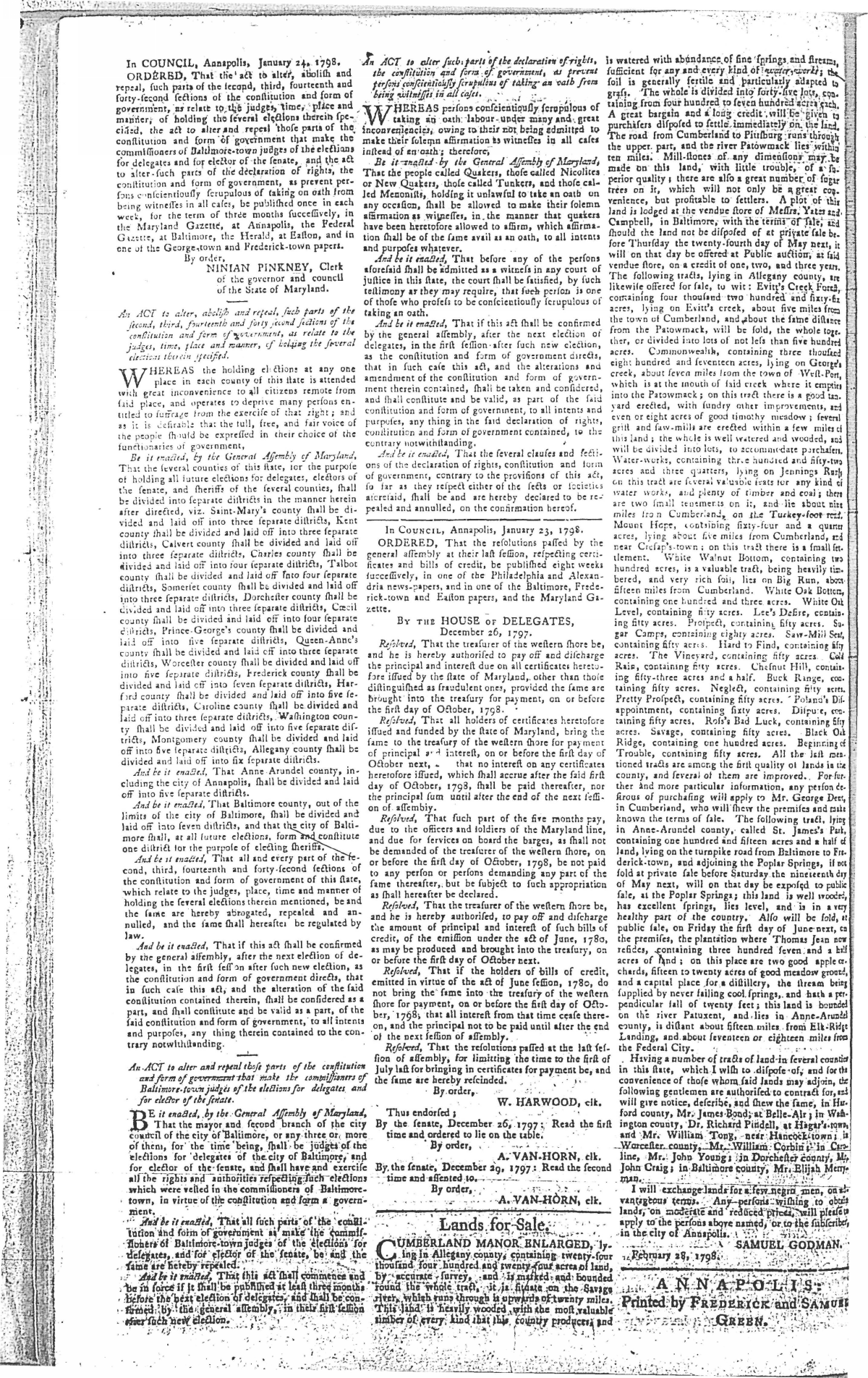 Maryland Gazette Collection MSA SC 2731 January 1, 1795 - December 29, 1803 M 1285 A Publication of the Archives of Maryland Online Image No: 717 Enlarge and print image (3M) |