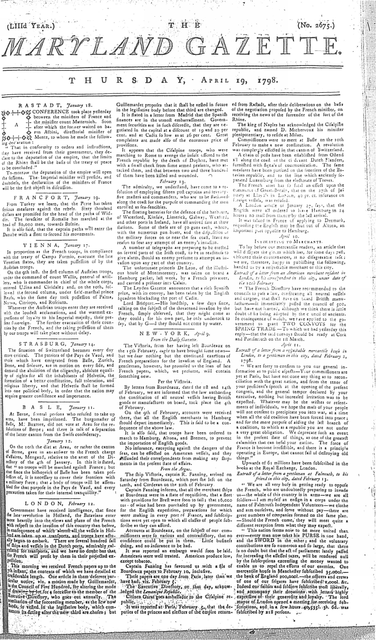 Maryland Gazette Collection MSA SC 2731 January 1, 1795 - December 29, 1803 M 1285 A Publication of the Archives of Maryland Online Image No: 720 Enlarge and print image (2M) |