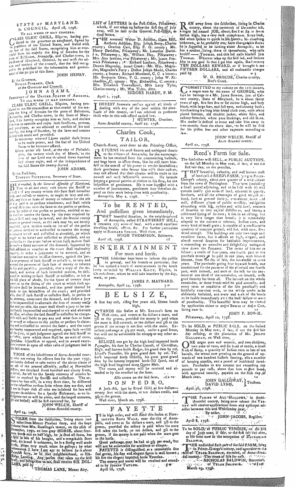 Maryland Gazette Collection MSA SC 2731 January 1, 1795 - December 29, 1803 M 1285 A Publication of the Archives of Maryland Online Image No: 734 Enlarge and print image (2M) |