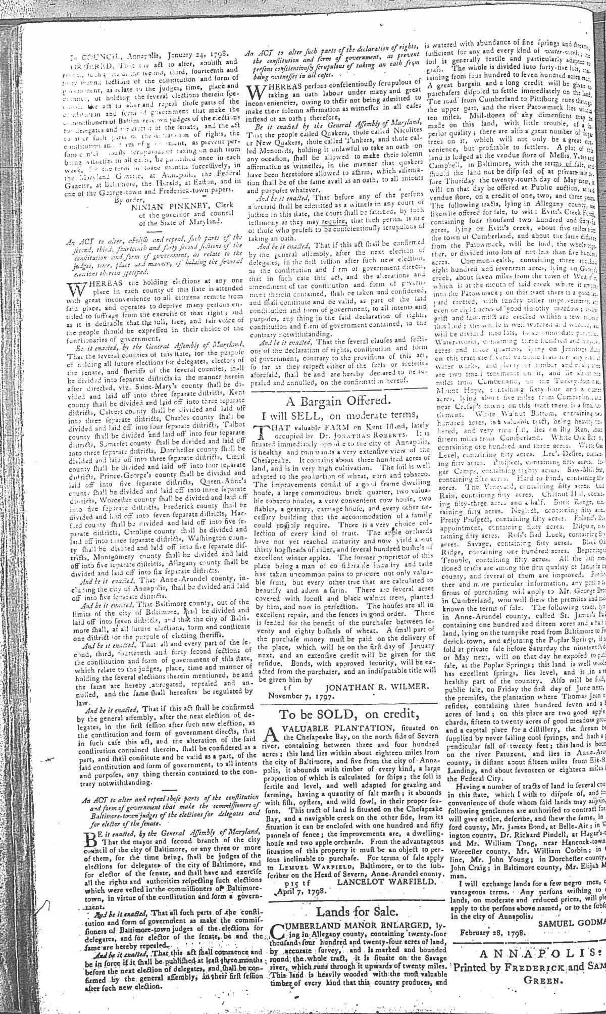 Maryland Gazette Collection MSA SC 2731 January 1, 1795 - December 29, 1803 M 1285 A Publication of the Archives of Maryland Online Image No: 737 Enlarge and print image (2M) |