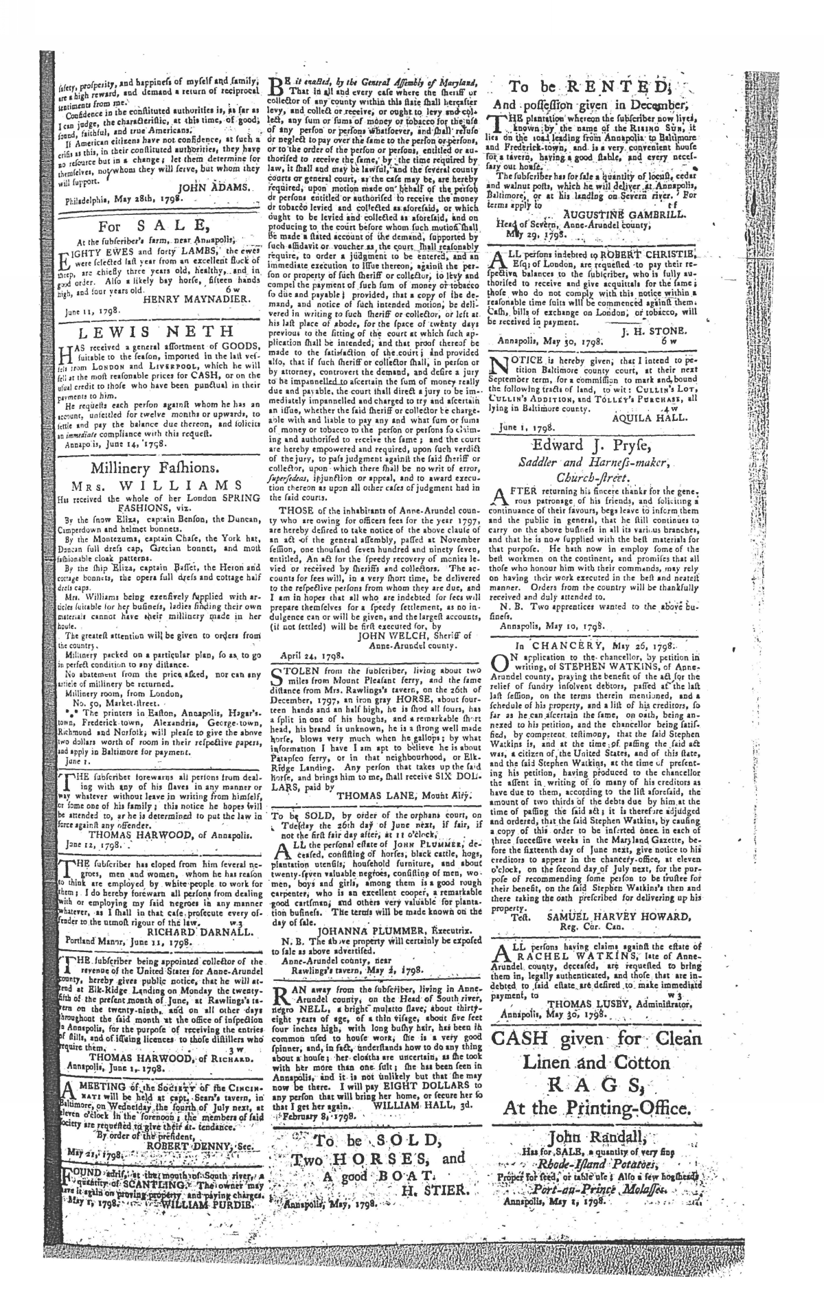 Maryland Gazette Collection MSA SC 2731 January 1, 1795 - December 29, 1803 M 1285 A Publication of the Archives of Maryland Online Image No: 758 Enlarge and print image (3M) |