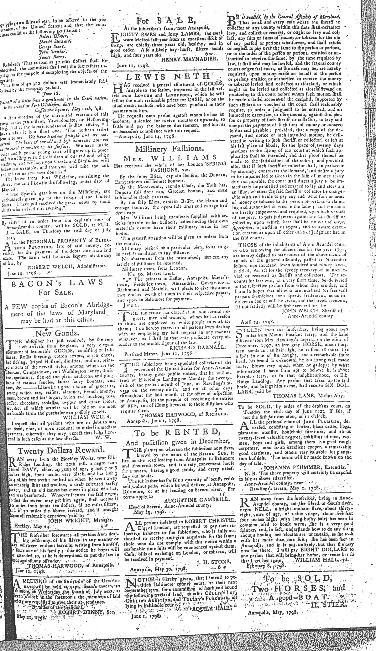 Maryland Gazette Collection MSA SC 2731 January 1, 1795 - December 29, 1803 M 1285 A Publication of the Archives of Maryland Online Image No: 762 Enlarge and print image (2M) |