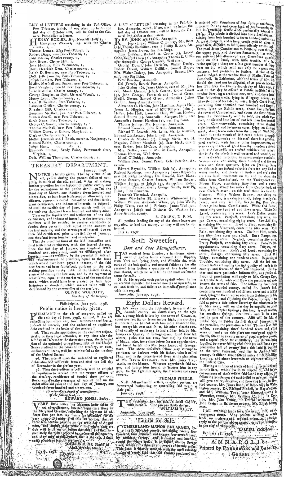 Maryland Gazette Collection MSA SC 2731 January 1, 1795 - December 29, 1803 M 1285 A Publication of the Archives of Maryland Online Image No: 797 Enlarge and print image (3M) |