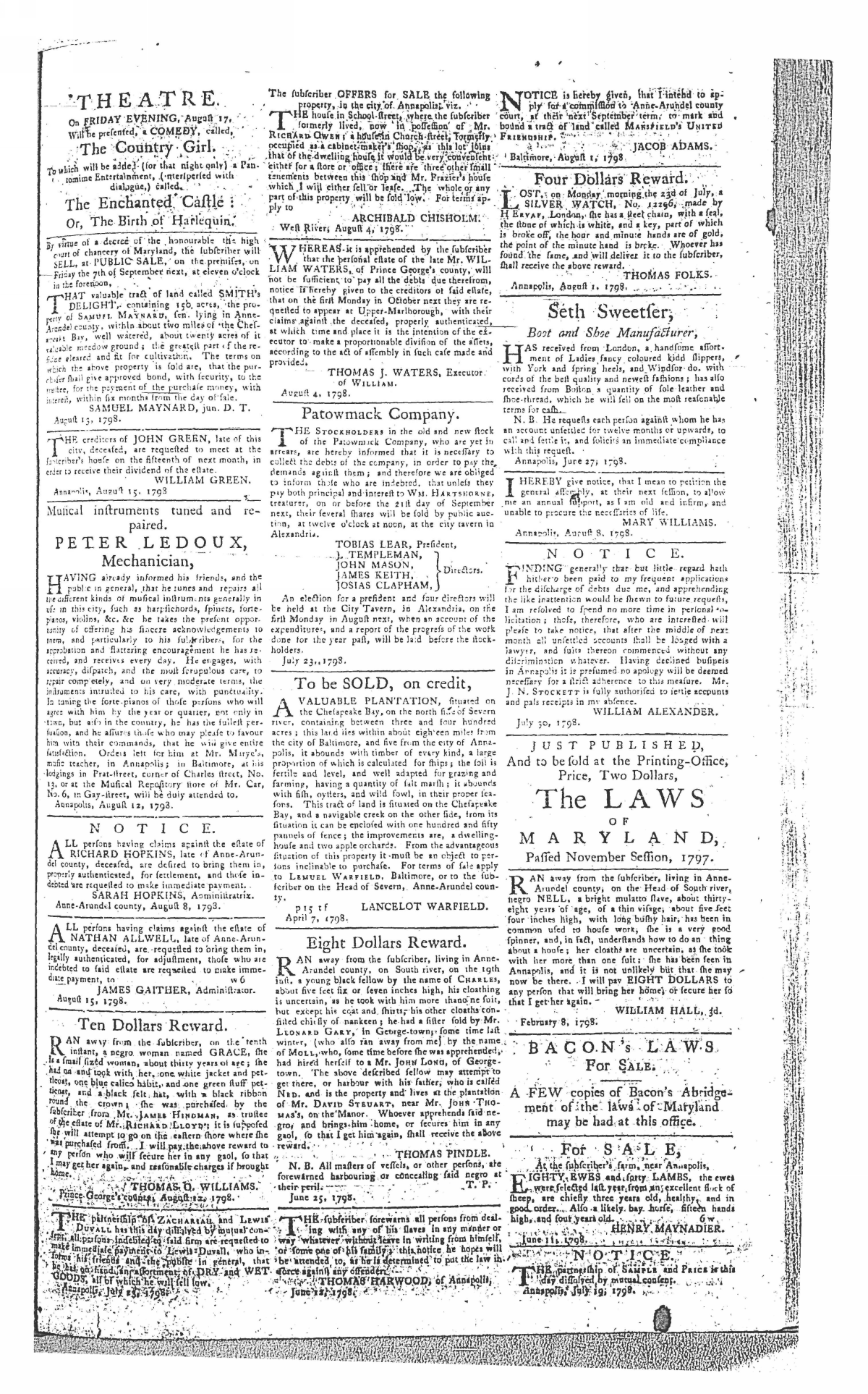 Maryland Gazette Collection MSA SC 2731 January 1, 1795 - December 29, 1803 M 1285 A Publication of the Archives of Maryland Online Image No: 800 Enlarge and print image (2M) |