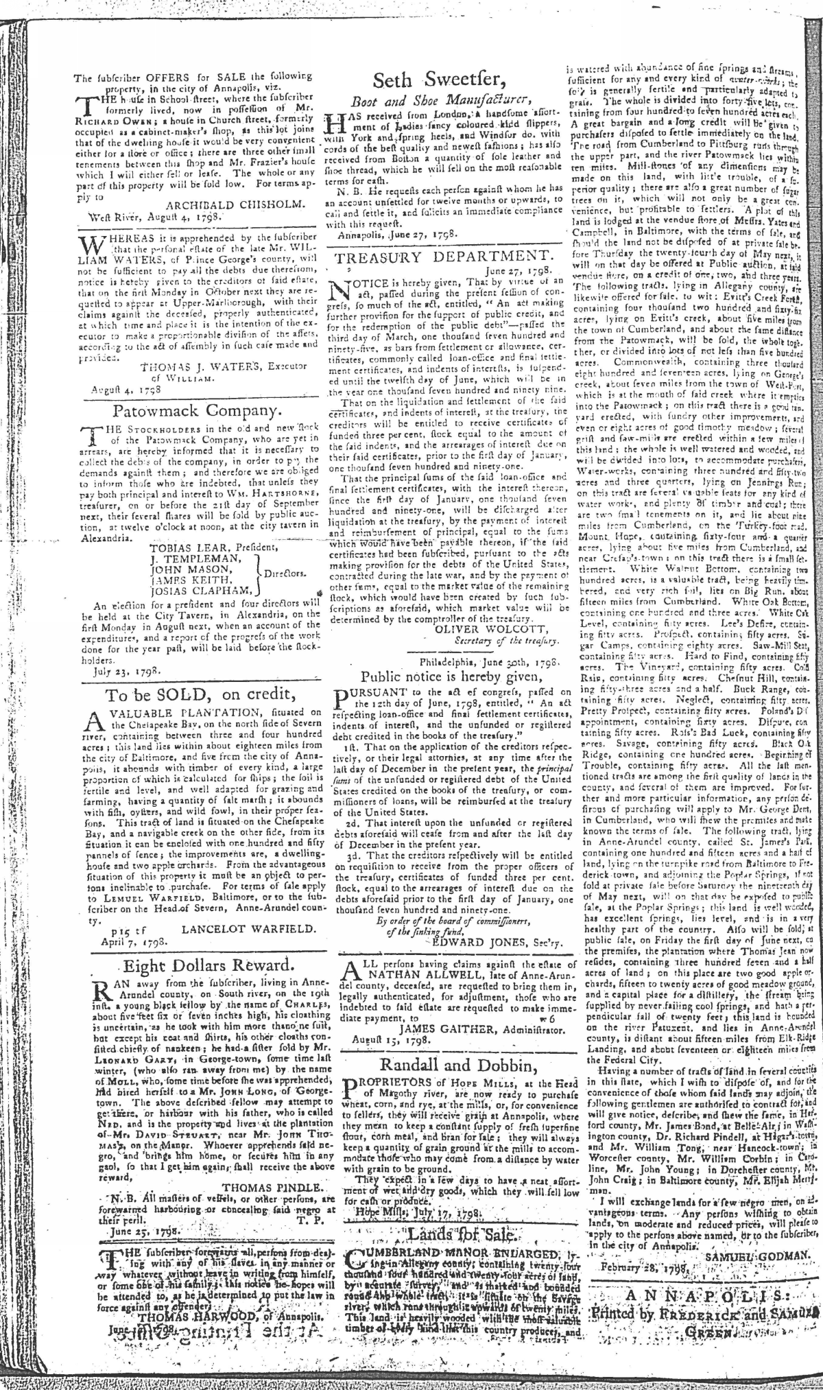 Maryland Gazette Collection MSA SC 2731 January 1, 1795 - December 29, 1803 M 1285 A Publication of the Archives of Maryland Online Image No: 813 Enlarge and print image (2M) |