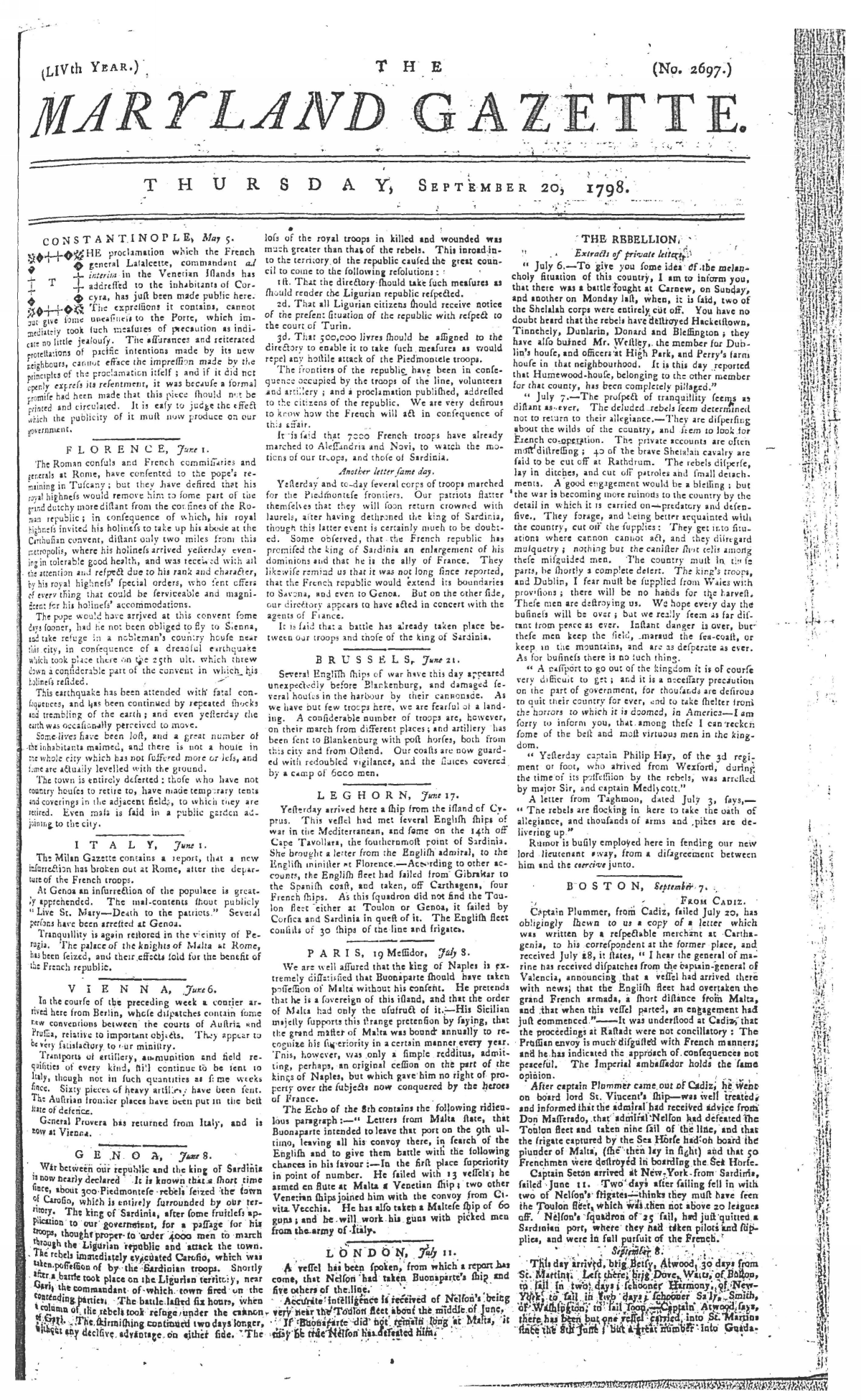Maryland Gazette Collection MSA SC 2731 January 1, 1795 - December 29, 1803 M 1285 A Publication of the Archives of Maryland Online Image No: 818 Enlarge and print image (2M) |