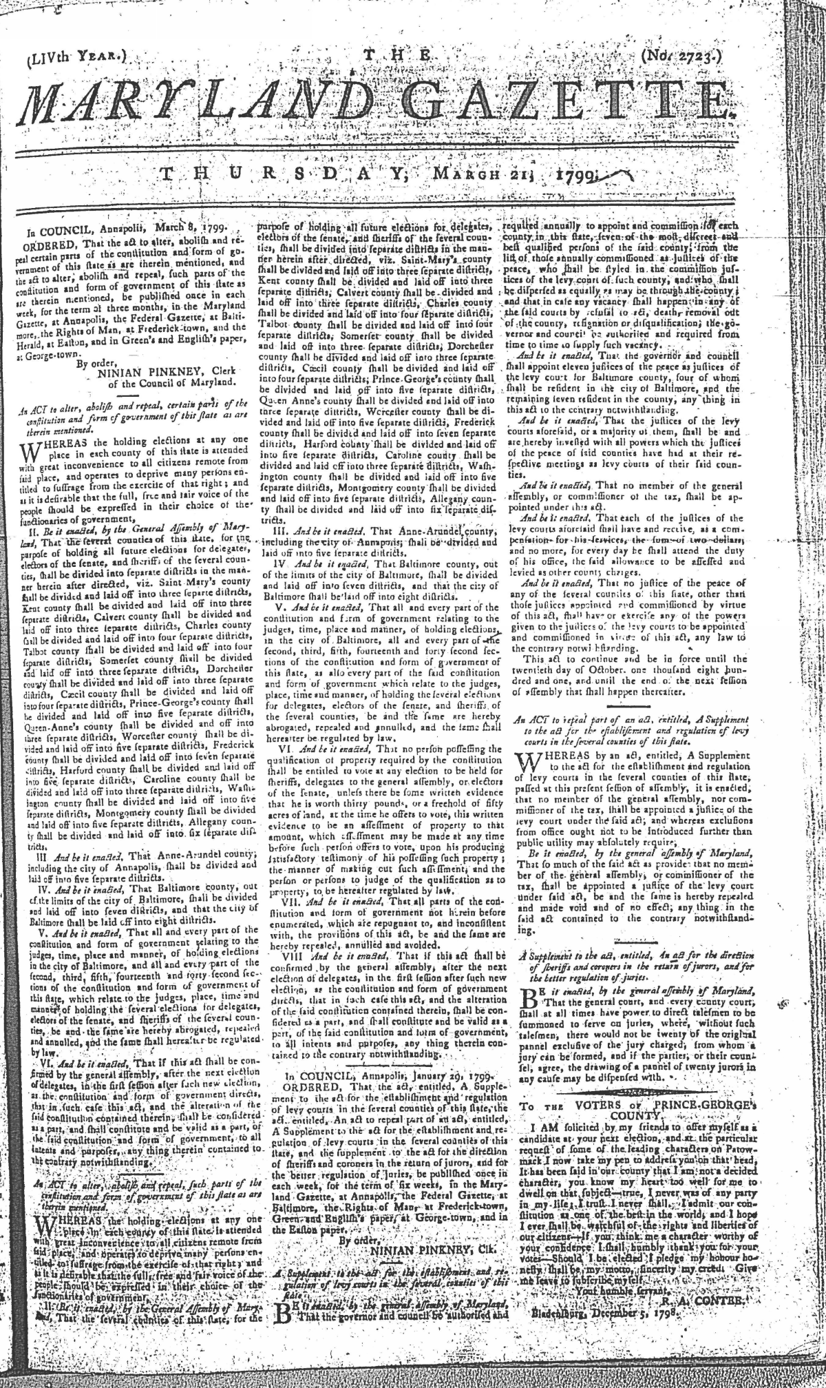 Maryland Gazette Collection MSA SC 2731 January 1, 1795 - December 29, 1803 M 1285 A Publication of the Archives of Maryland Online Image No: 918 Enlarge and print image (3M) |